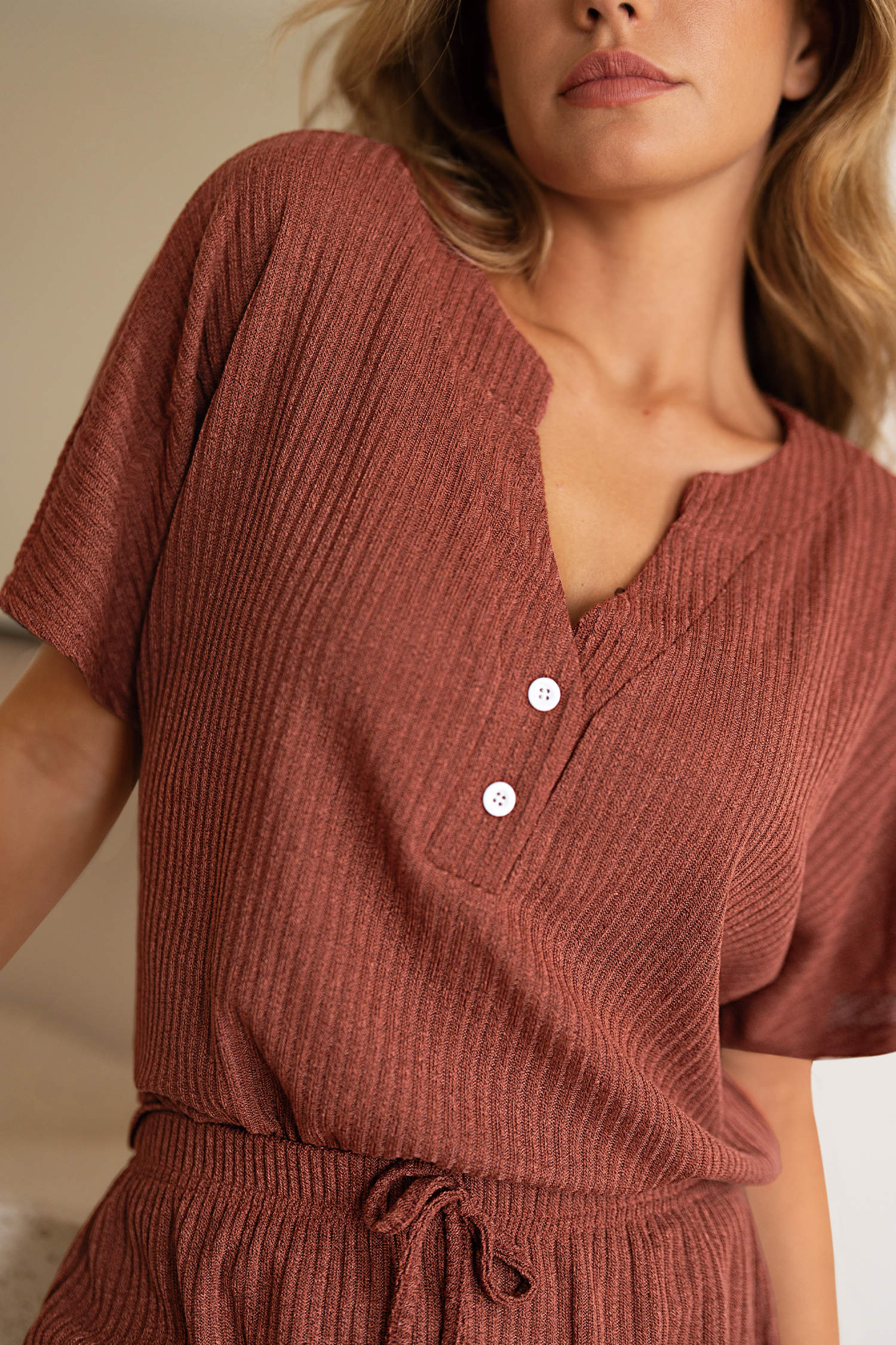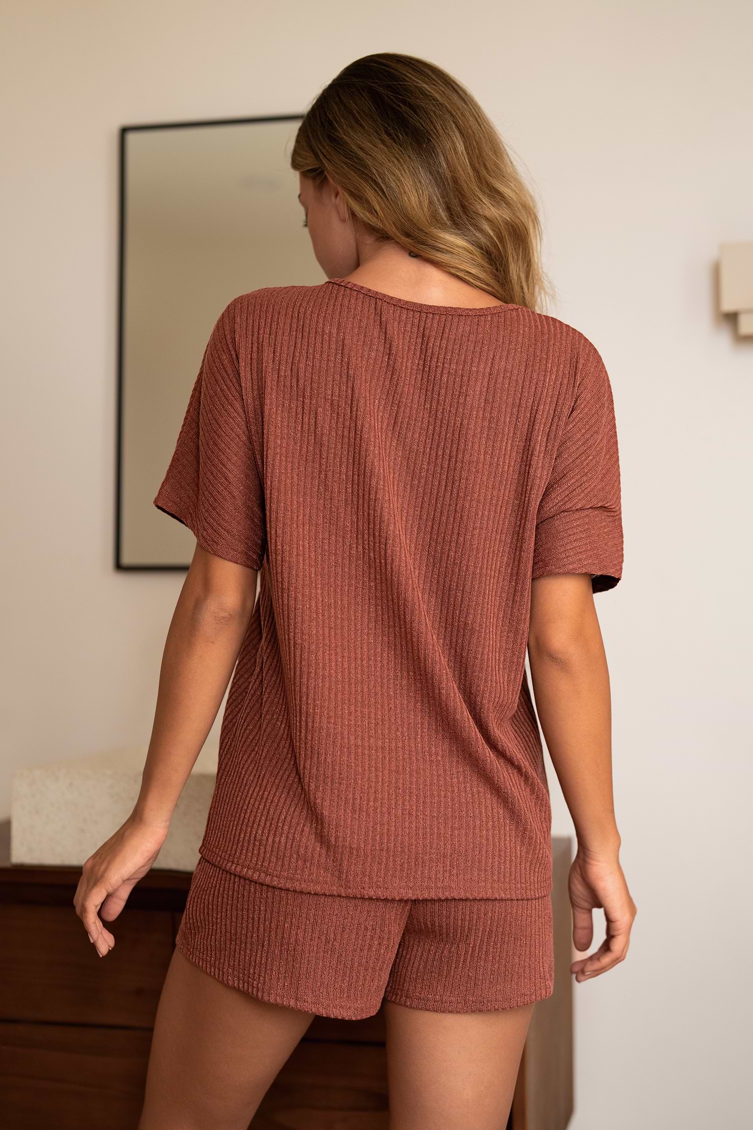 Brick Ribbed Knit Short Sleeve Top & Shorts Pajama Set