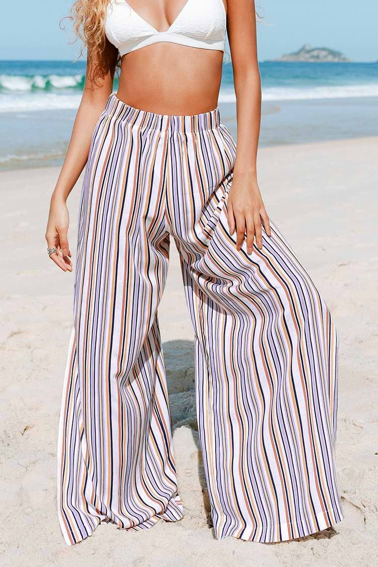 Brittney Stripe Elastic Waist Split Pants
