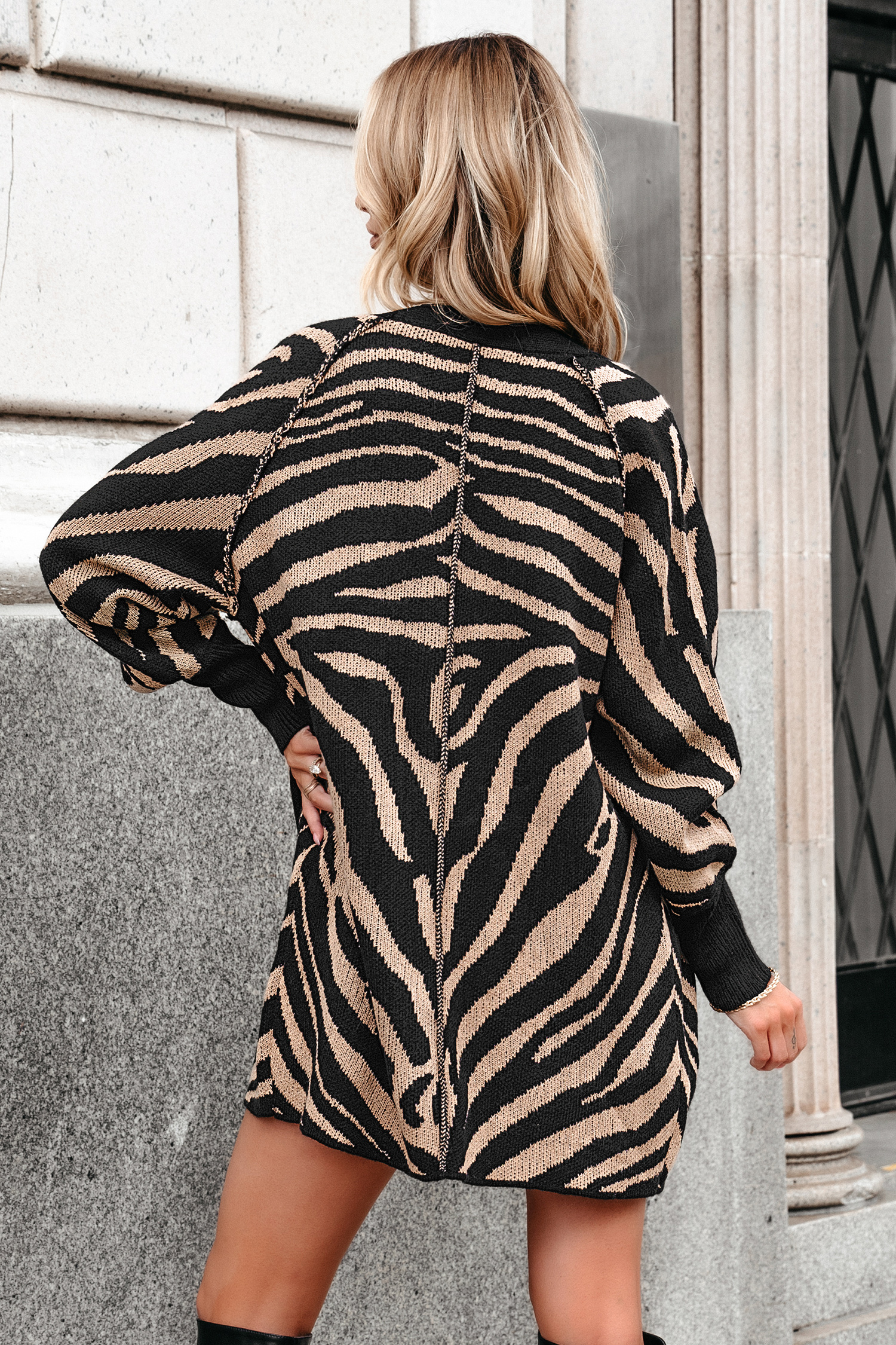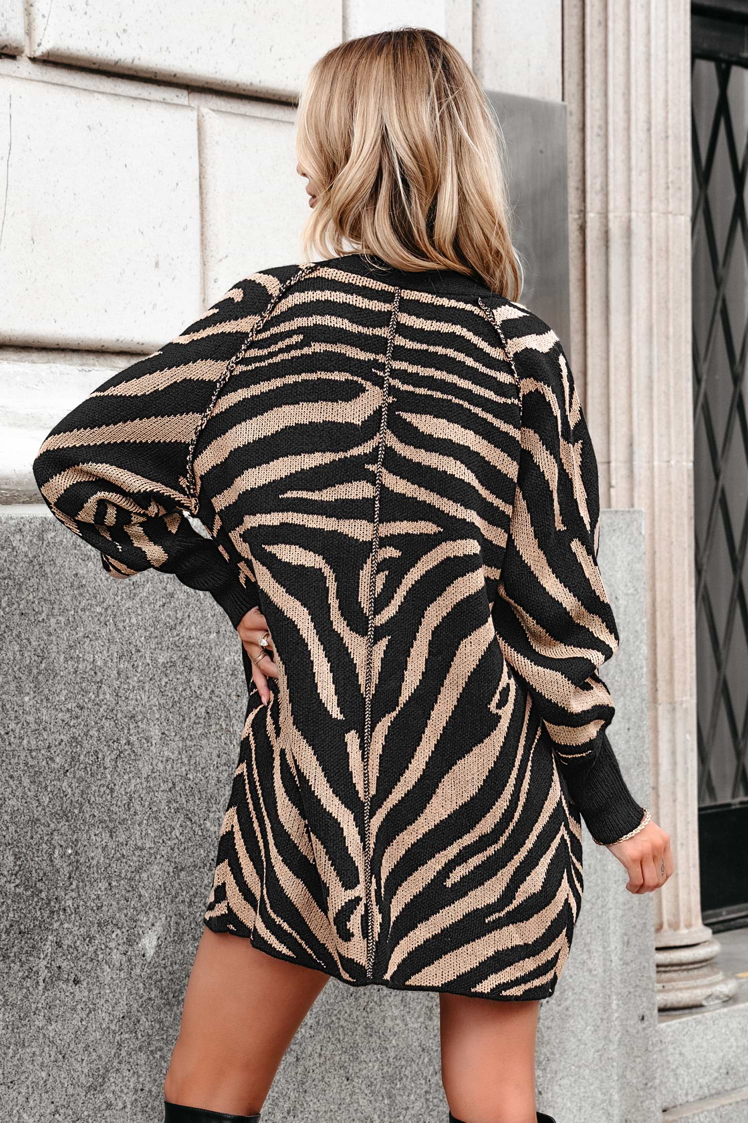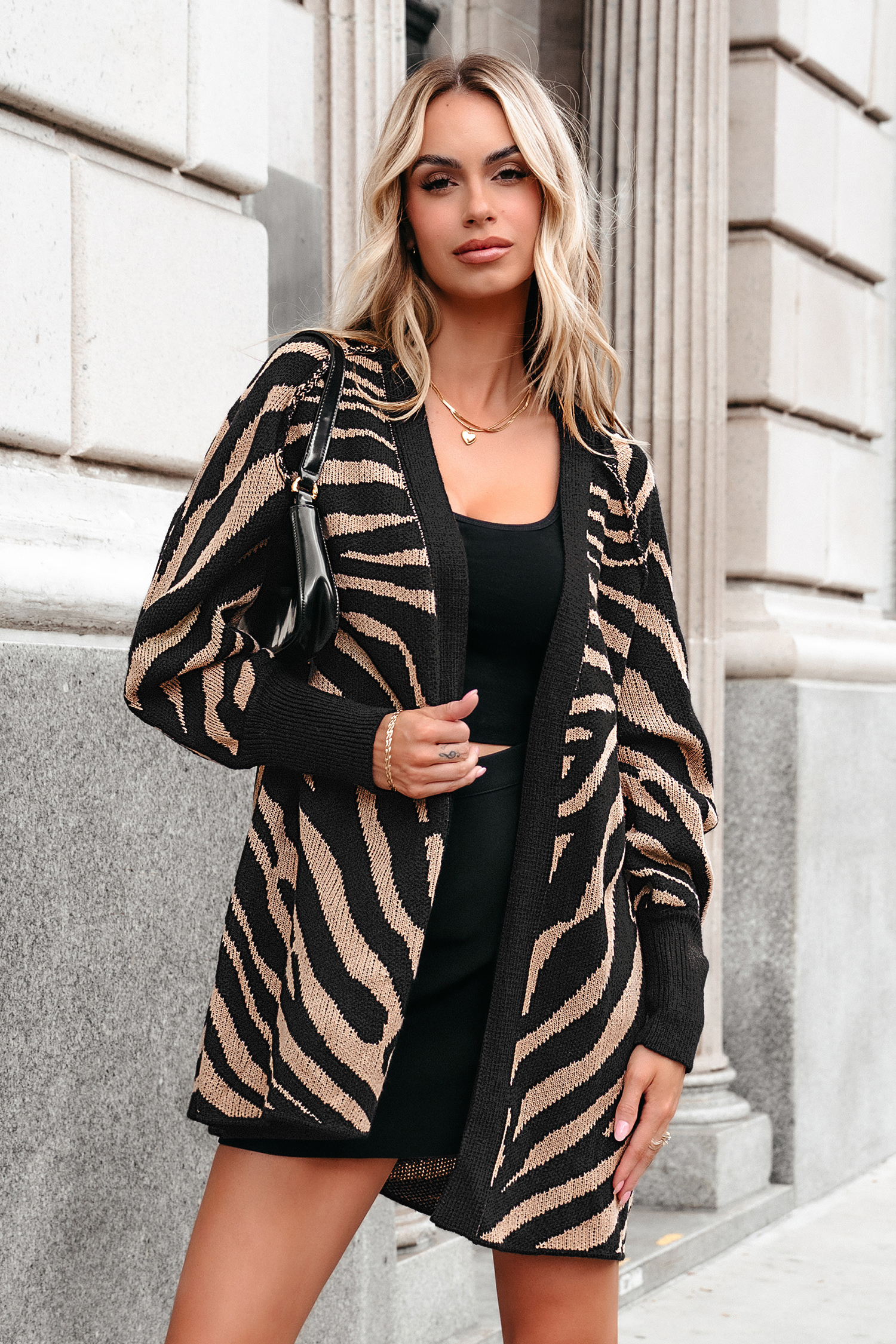 Brown & Black Zebra Print Open Front Cardigan