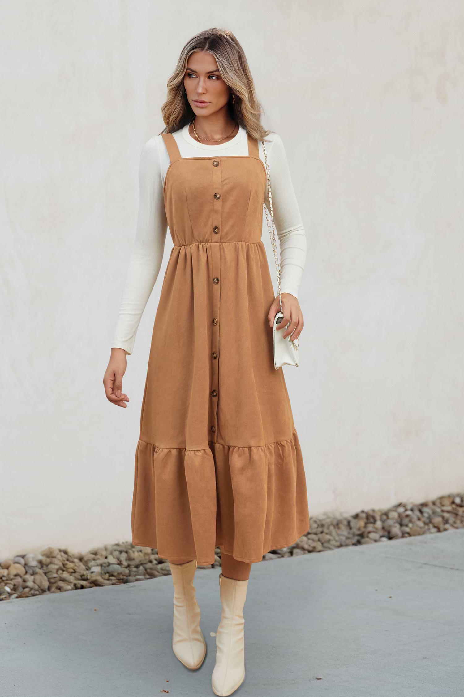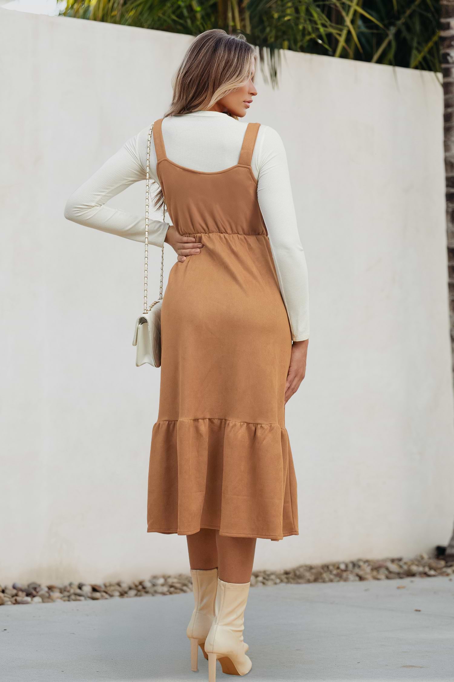 HomeBrown Faux Suede Sleeveless Midi Dress