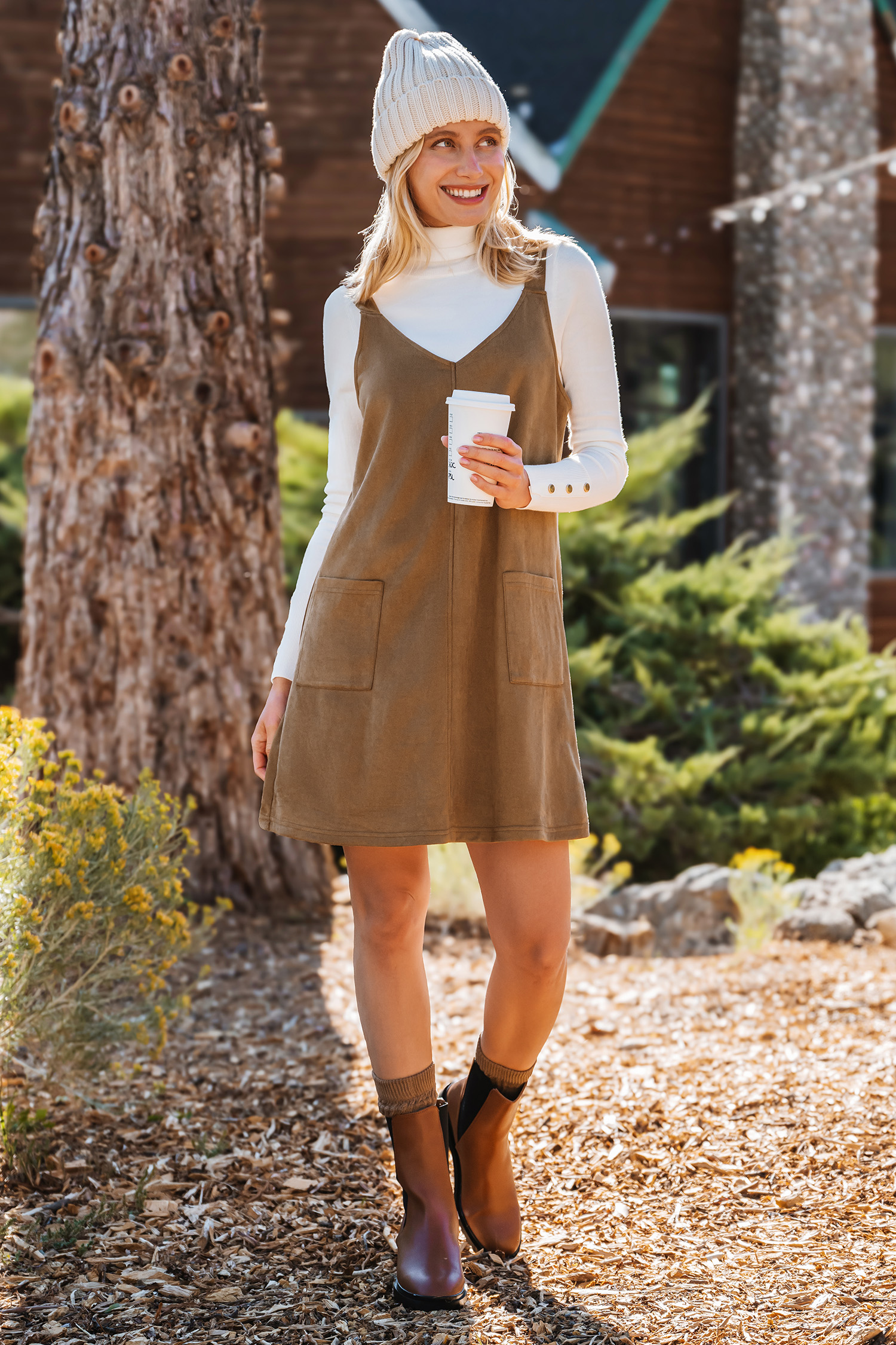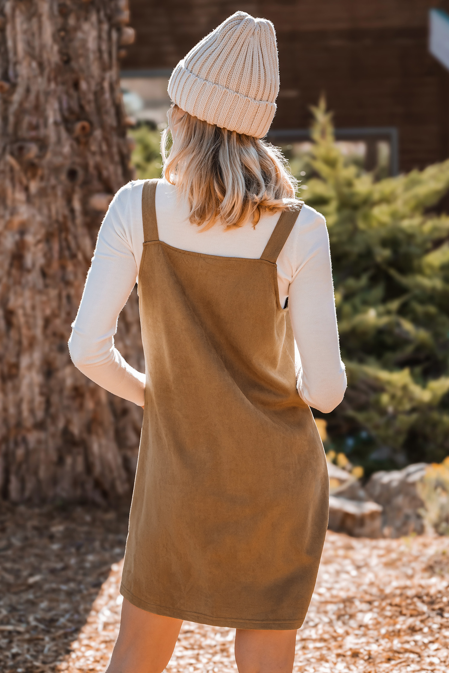 Brown Faux Suede Sleeveless V-Neck Mini Dress