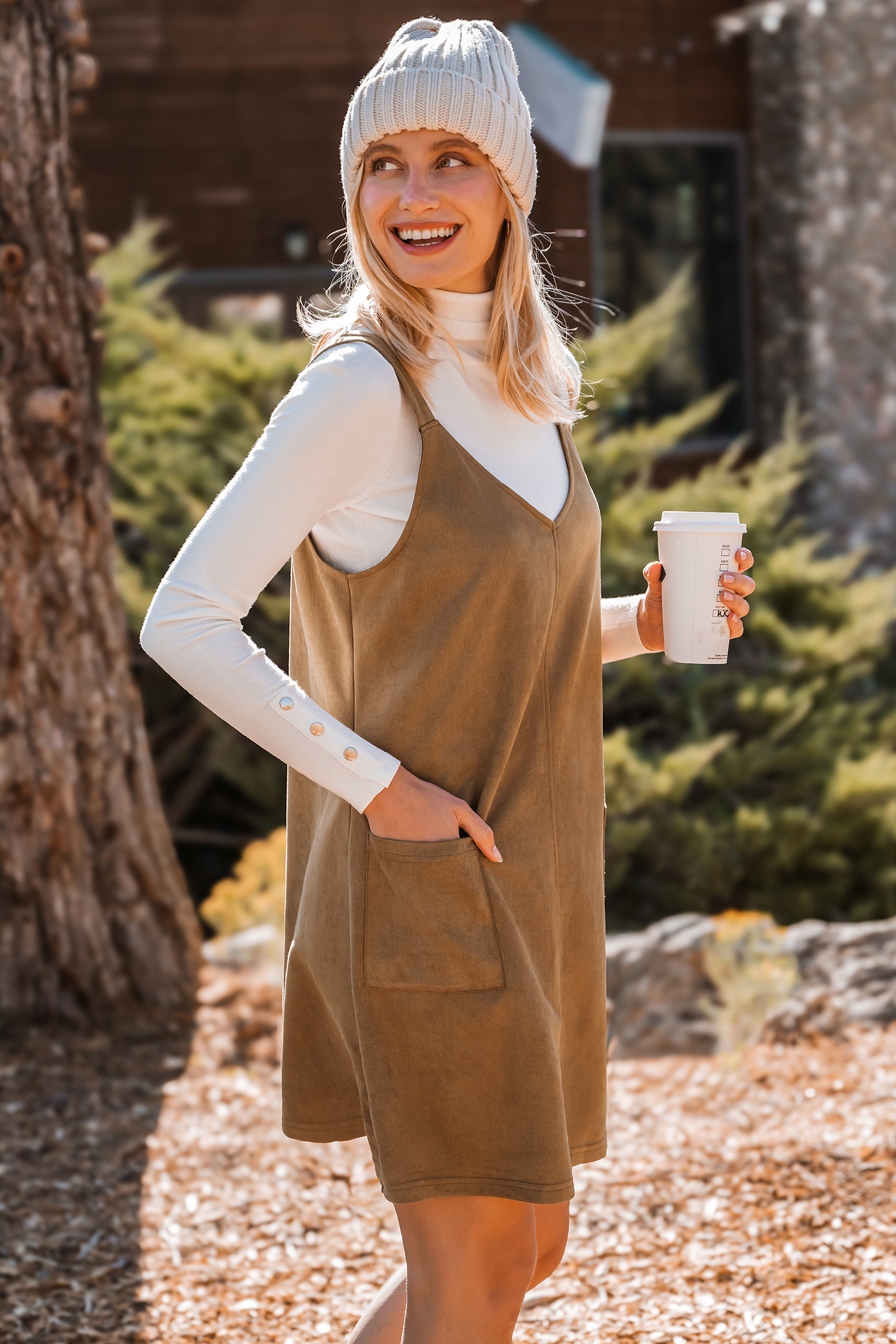 HomeBrown Faux Suede Sleeveless V-Neck Mini Dress