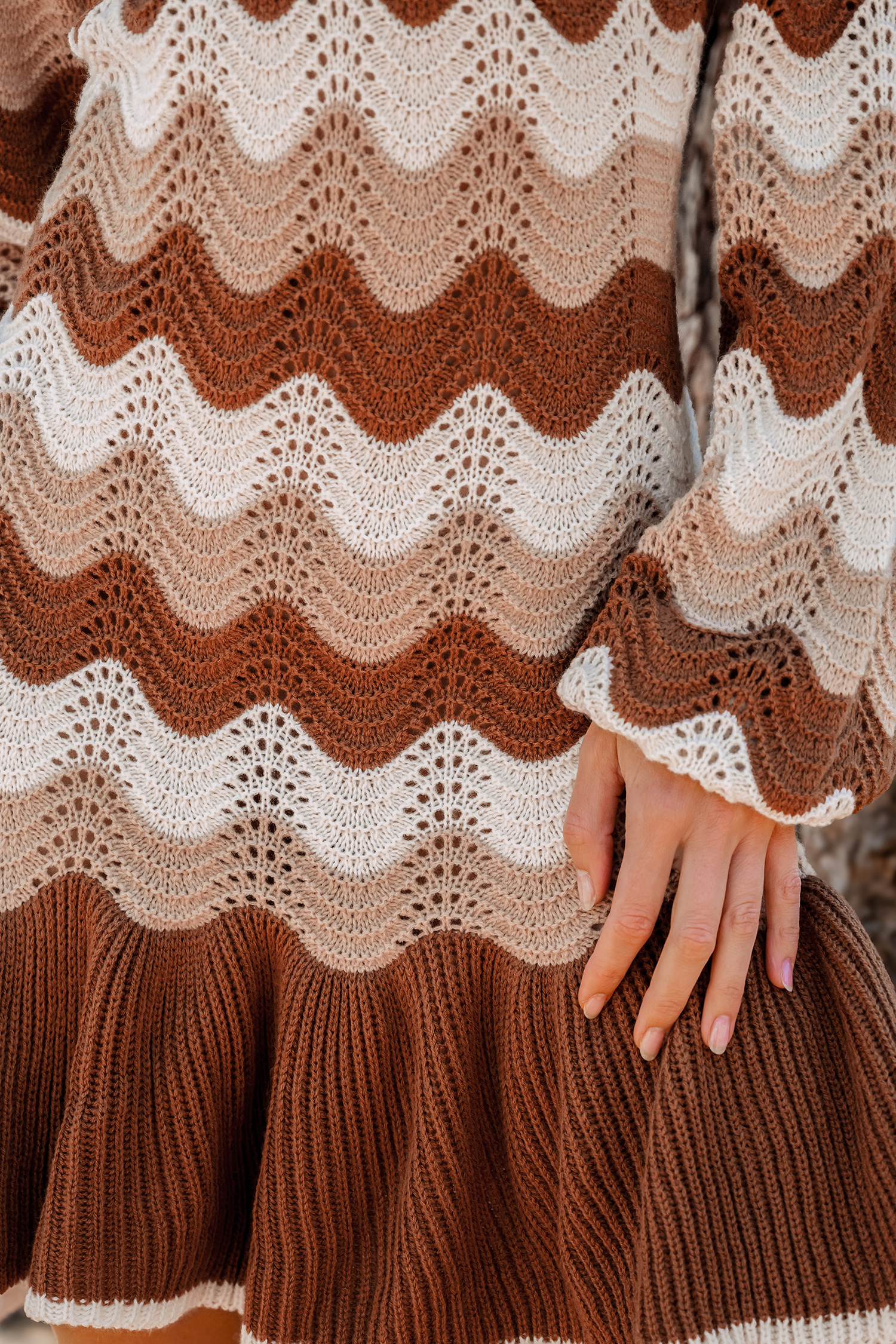 HomeBrown Striped Long Sleeve Flounce Hem Mini Sweater Dress