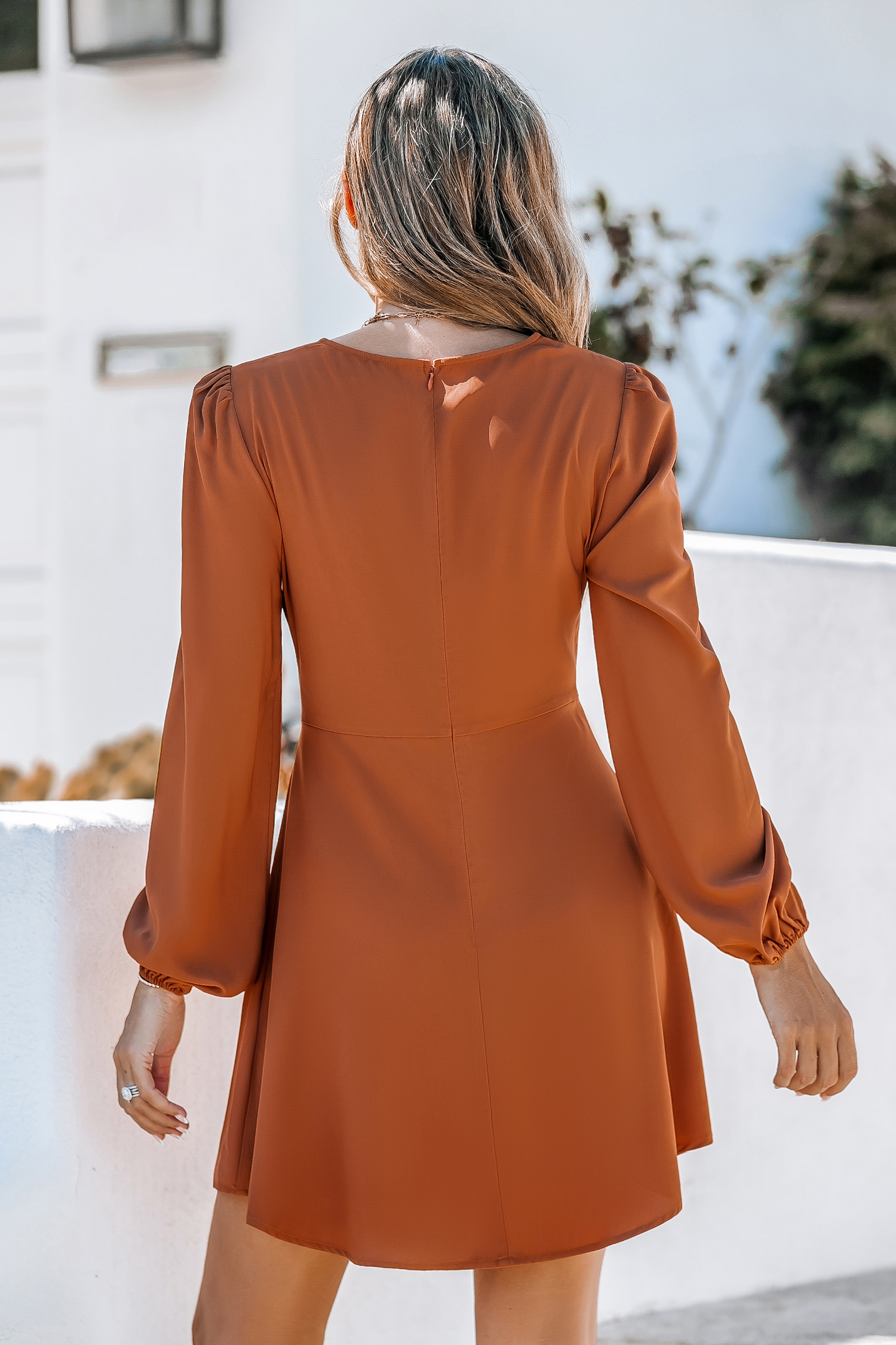 Brown Twist & Keyhole Long Sleeve Mini Dress