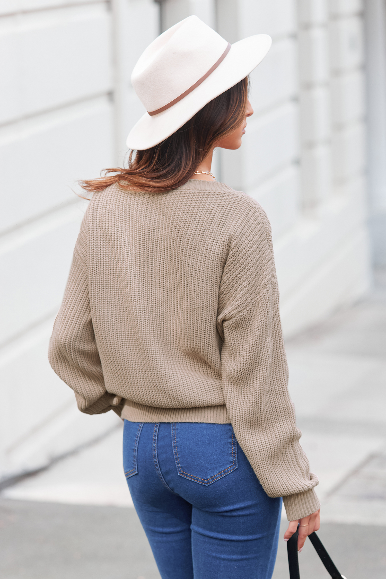 Brown V-Neck Cut-Out Front Button Knit Cardigan