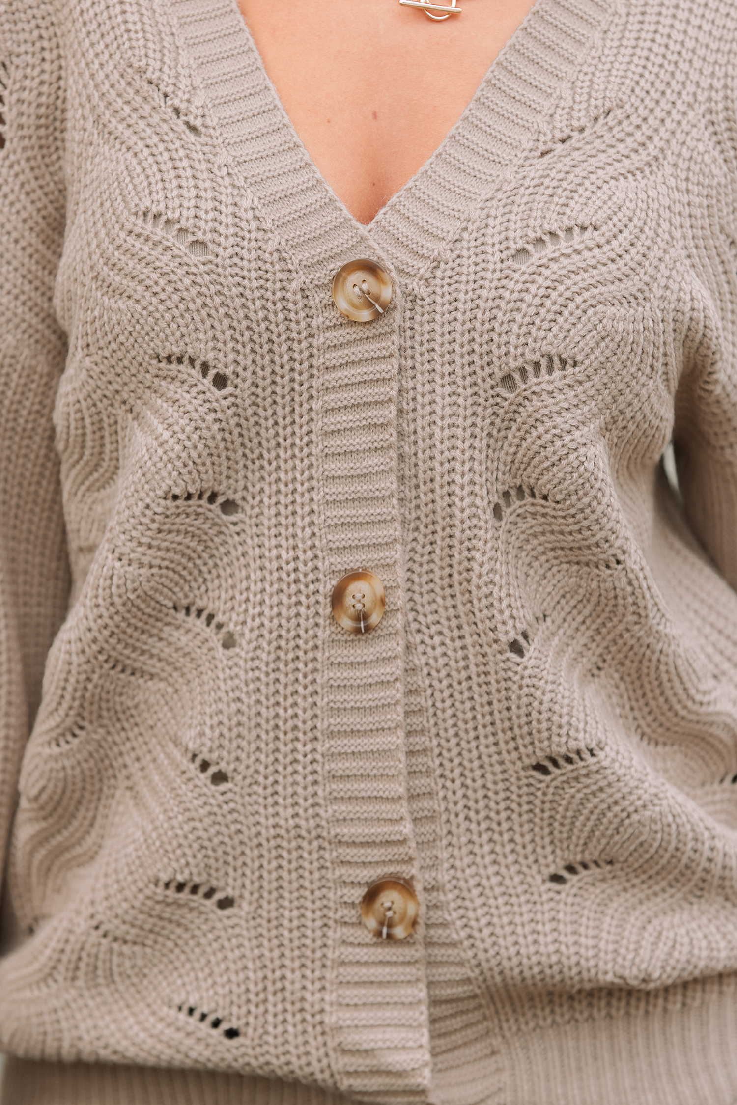 HomeBrown V-Neck Cut-Out Front Button Knit Cardigan