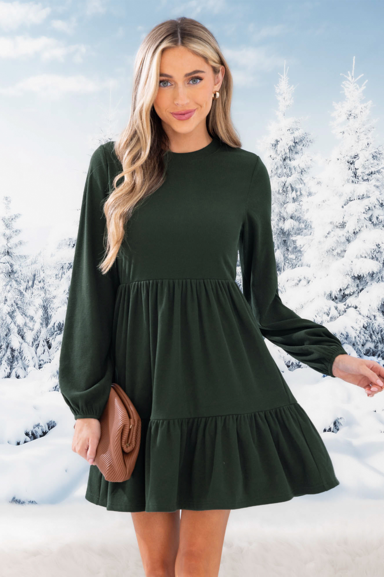 Bubble Sleeve Round Neck Dress