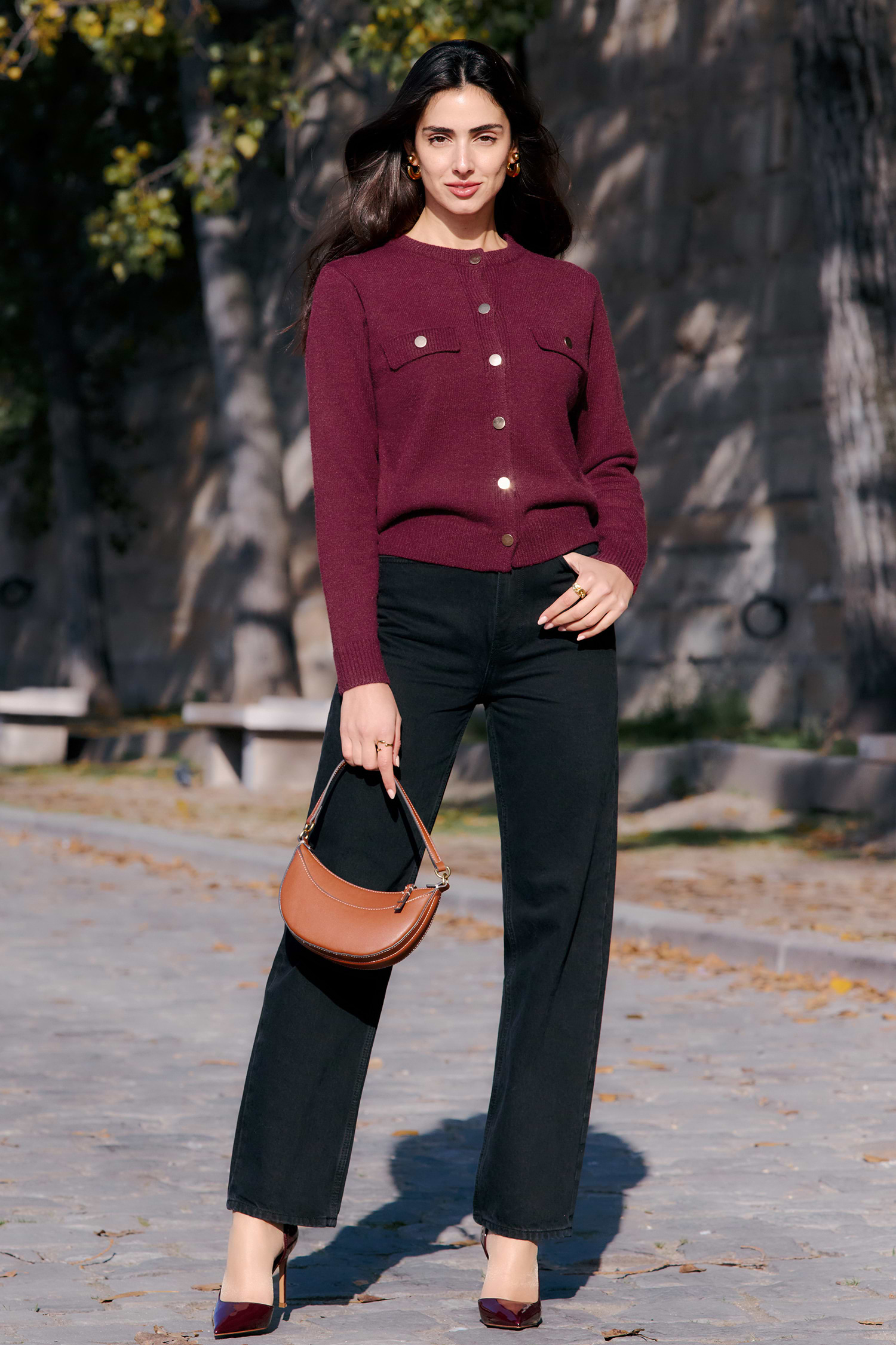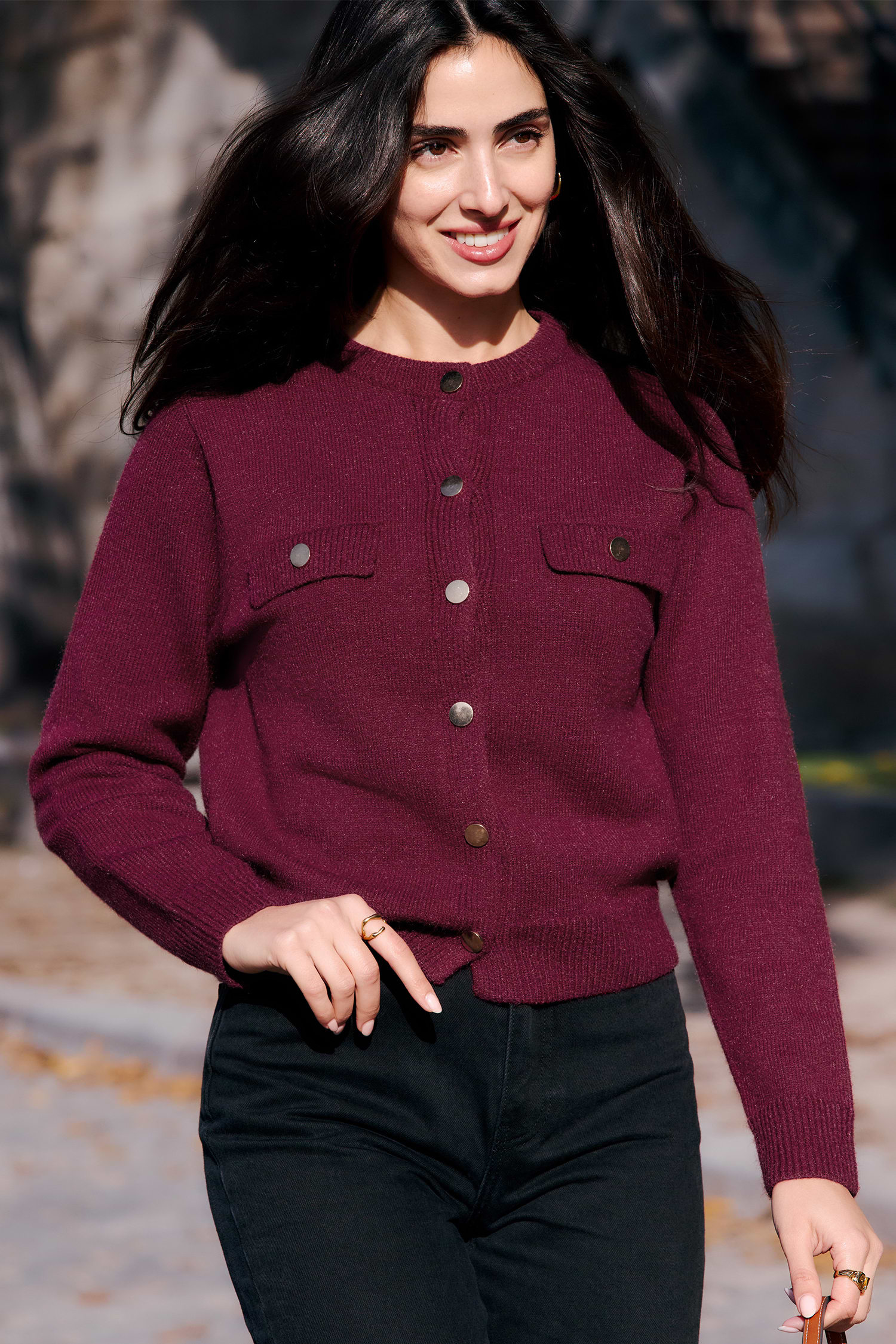 Burgundy Long Sleeve Button Up Cardigan