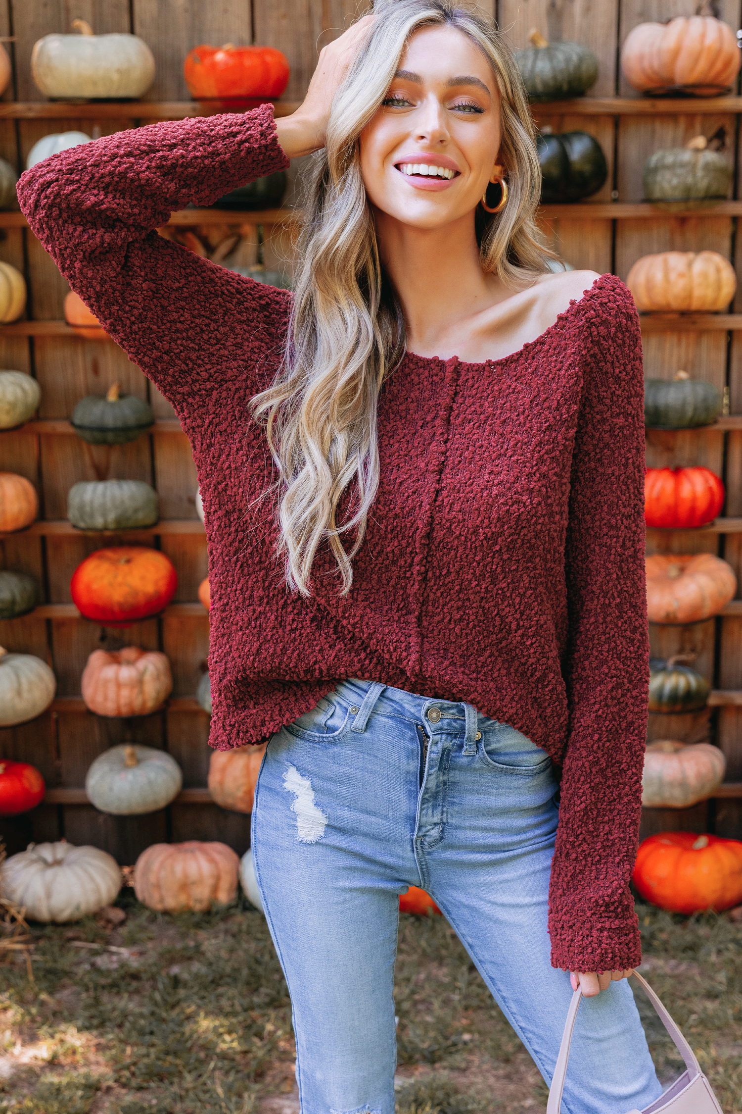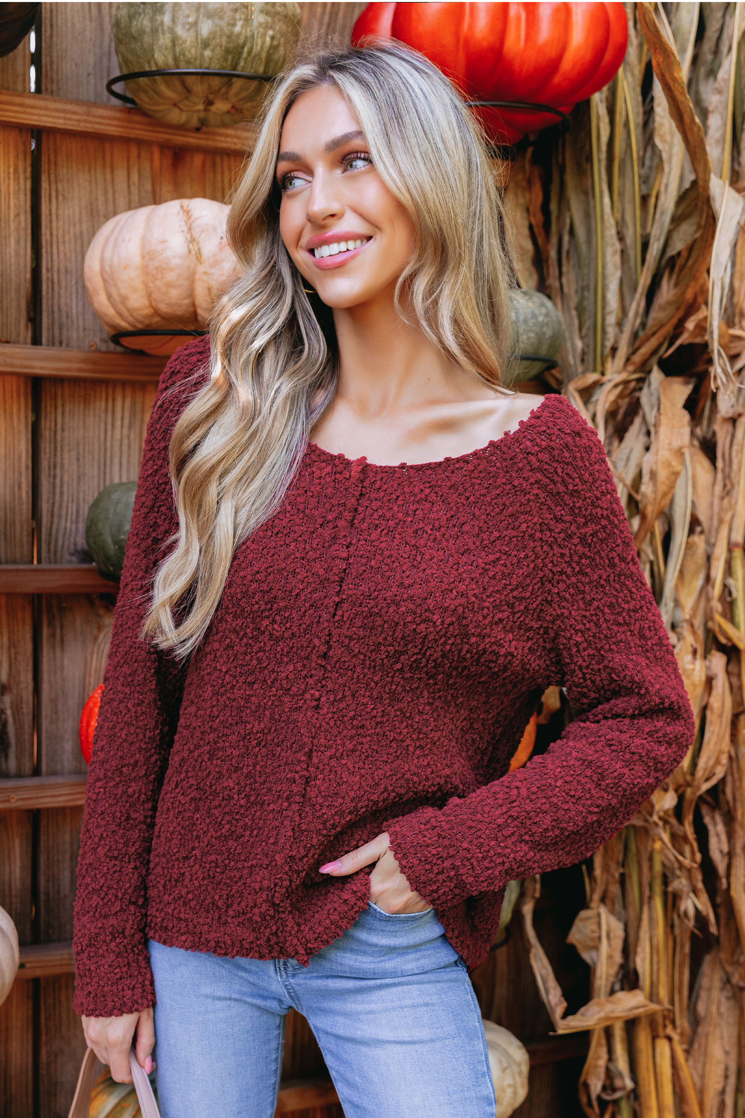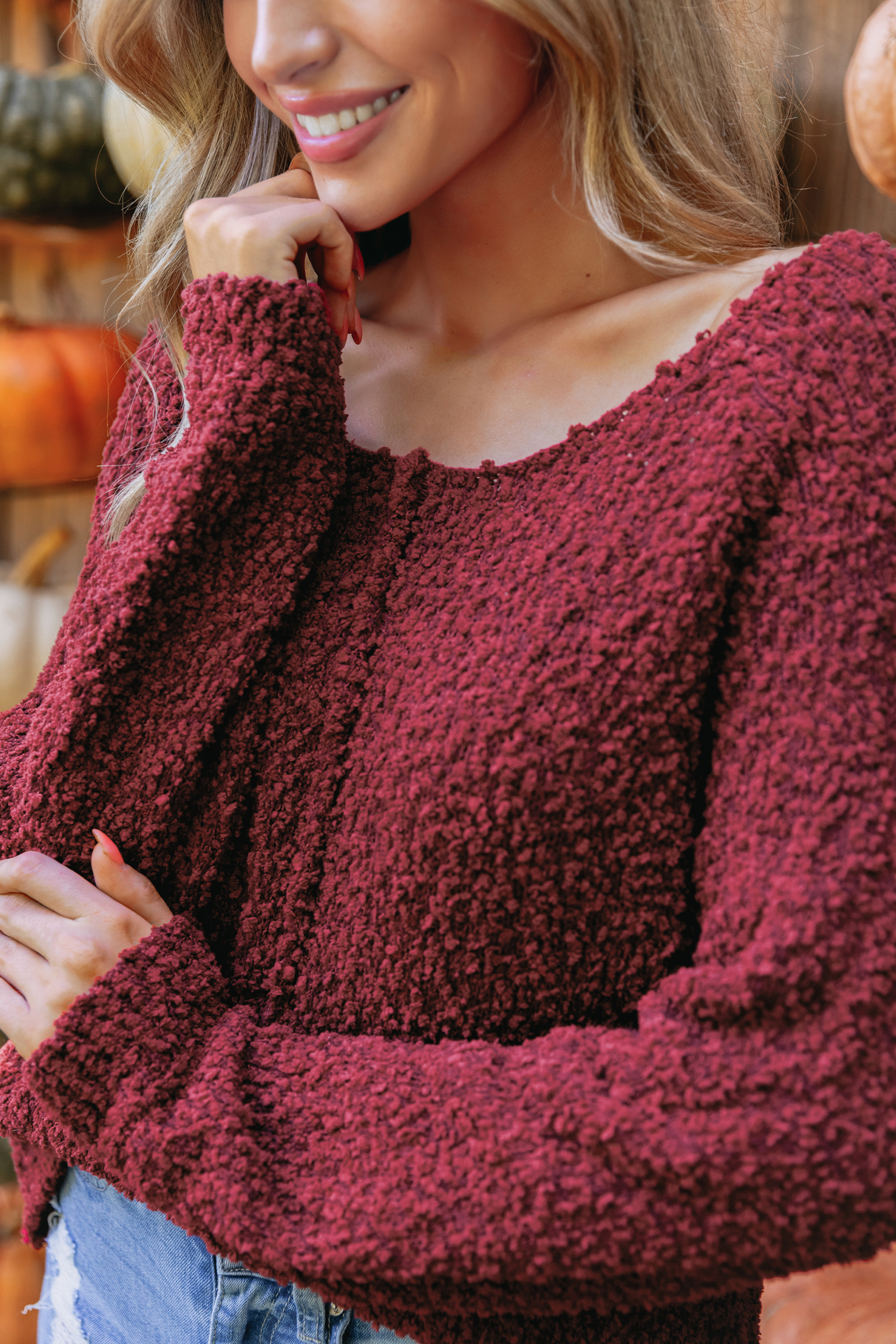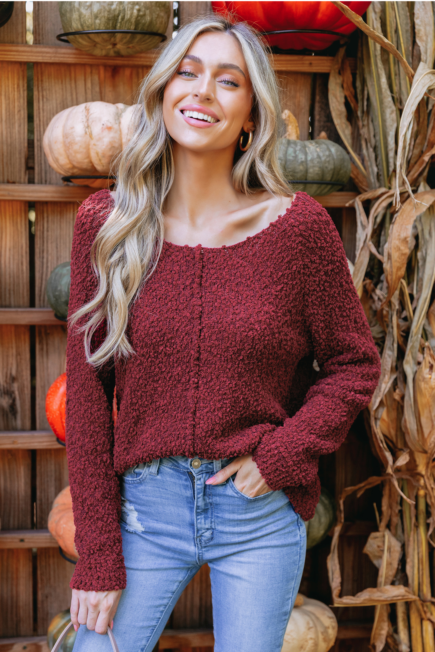 Burgundy Popcorn Knit Sweater