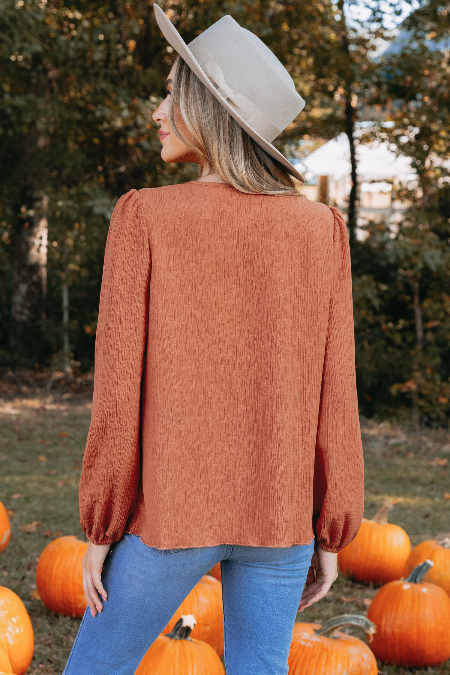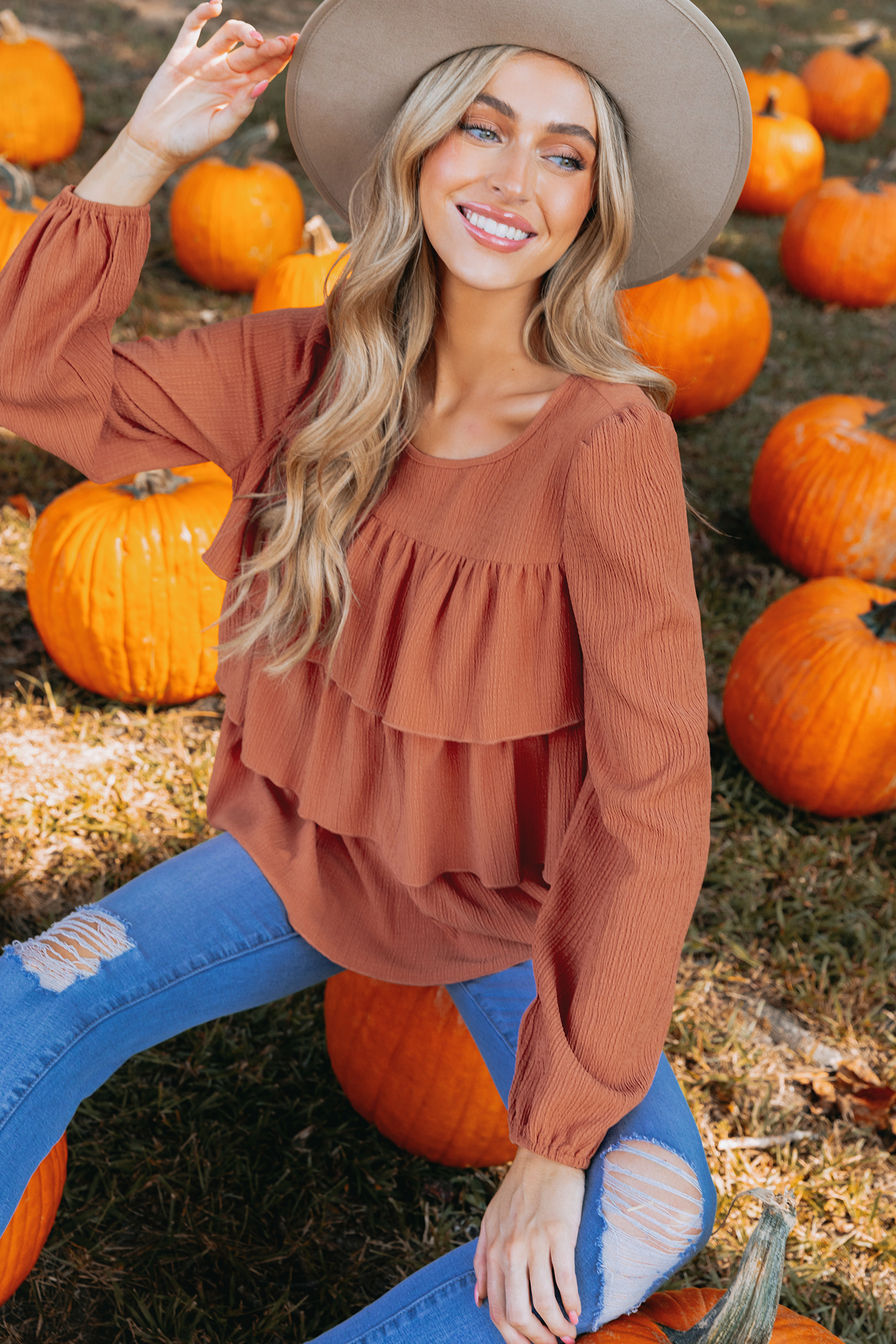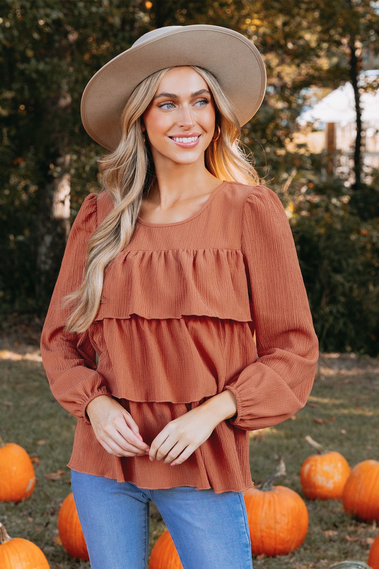 Burnt Orange Crinkle Woven Tiered Flounce Top