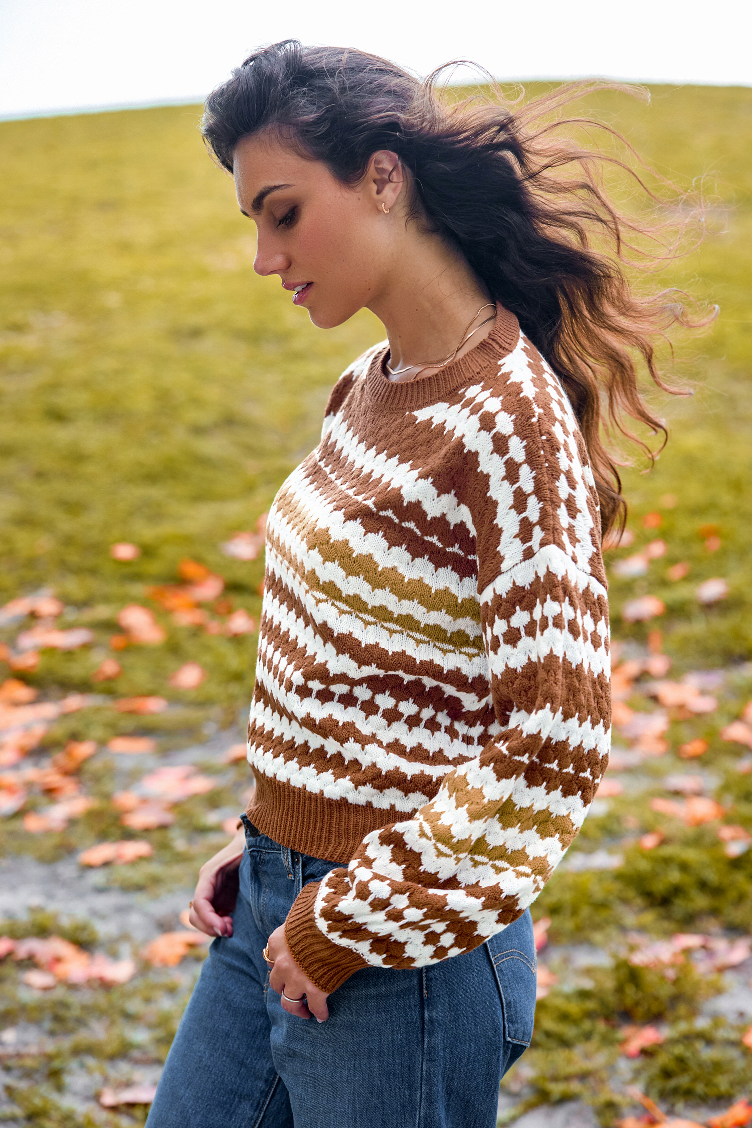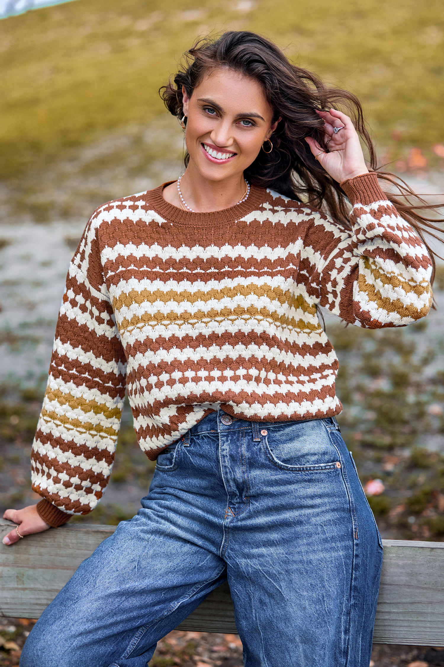 HomeBurnt Orange Irregular Striped Long Sleeve Sweater