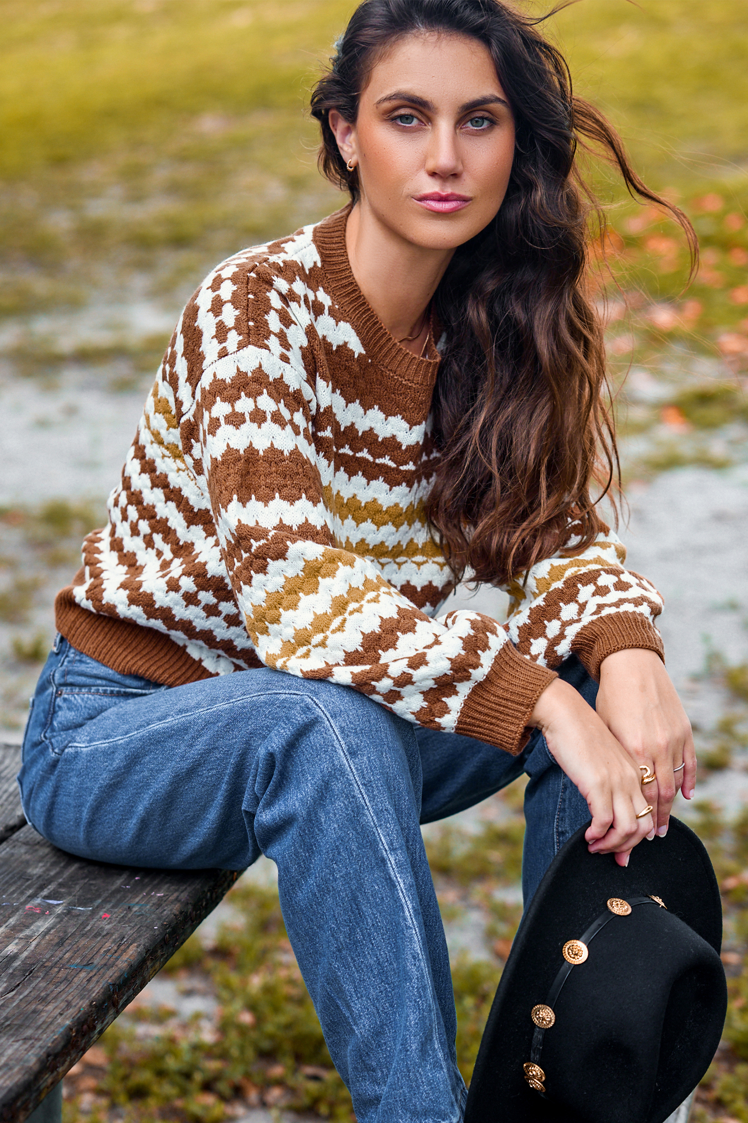 Burnt Orange Irregular Striped Long Sleeve Sweater