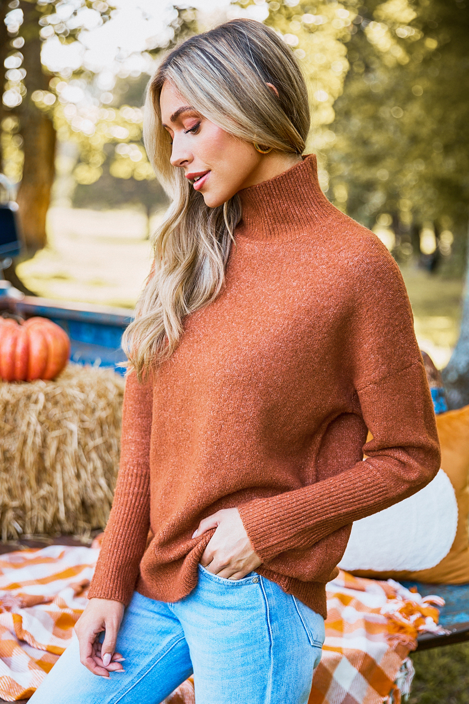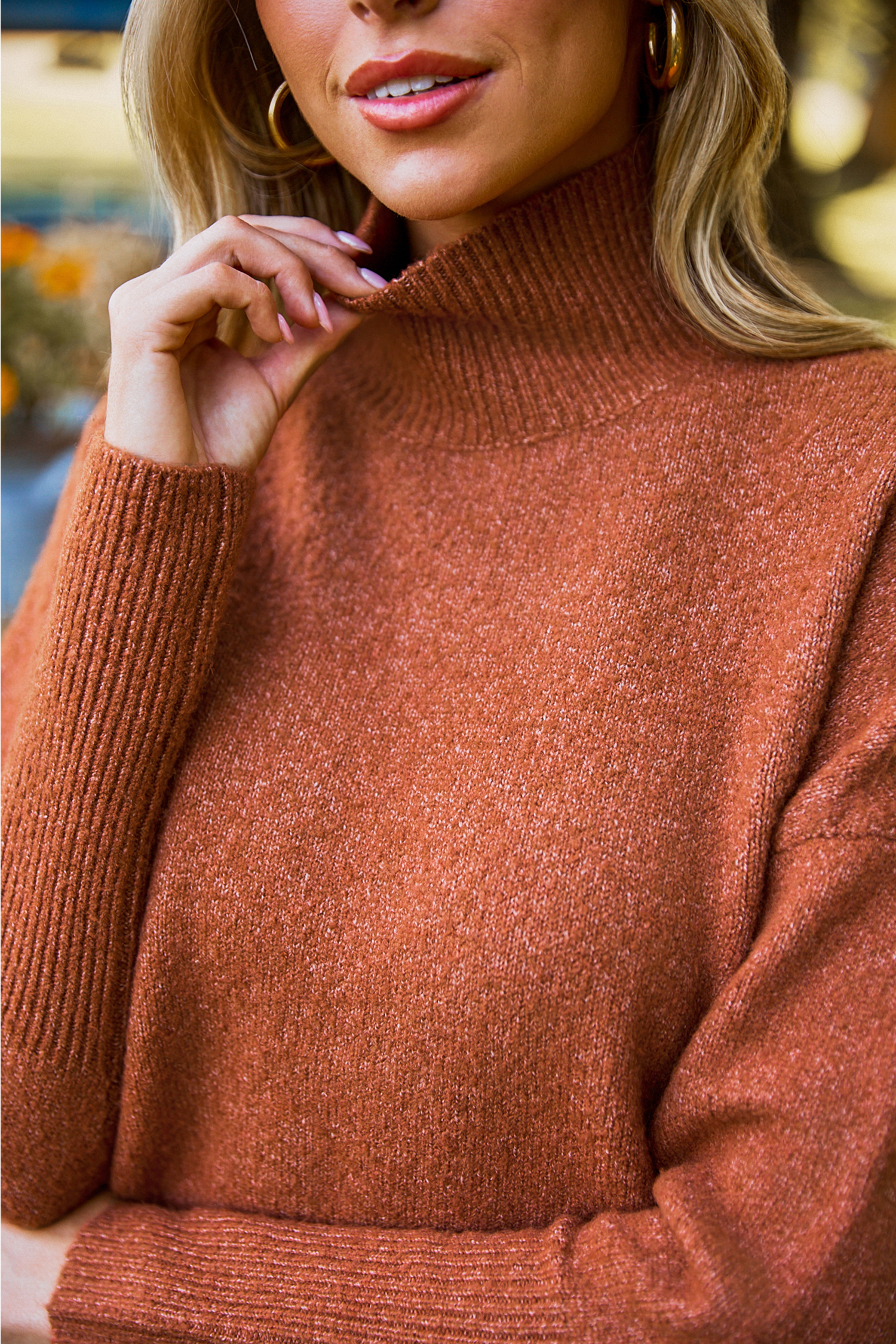 Burnt Orange Turtleneck Drop Shoulder Sweater