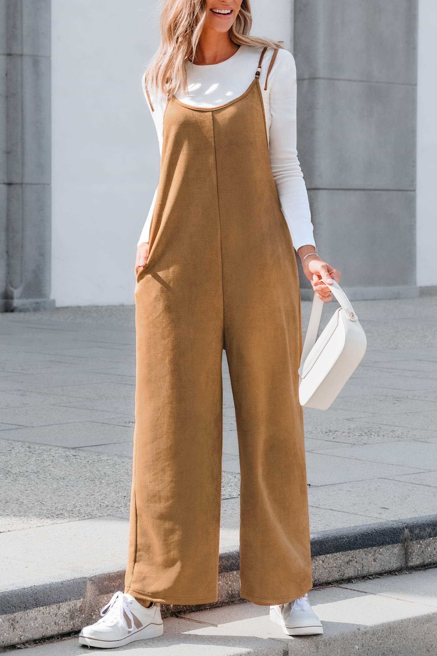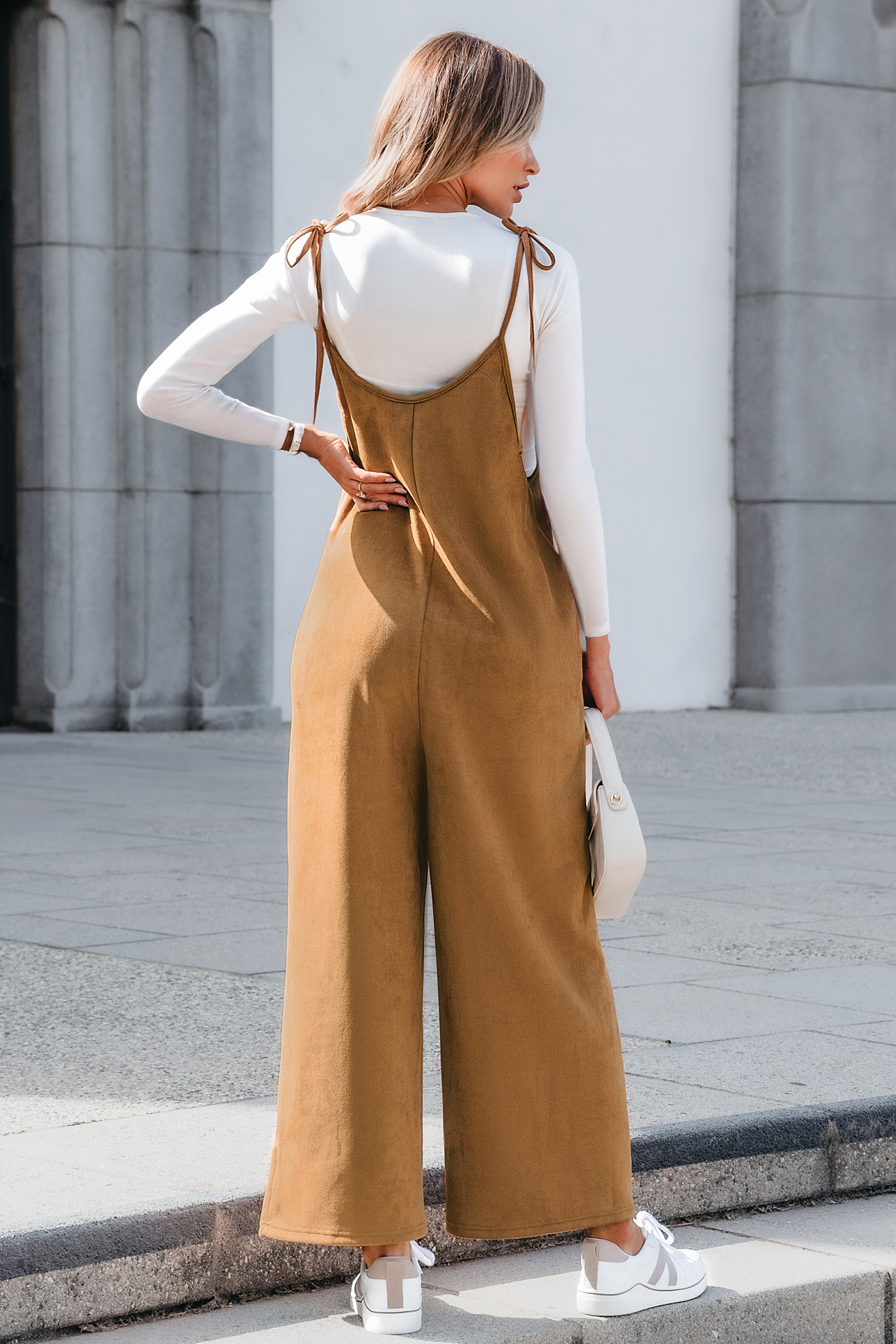 HomeCamel Faux Suede Wide Leg Jumpsuit