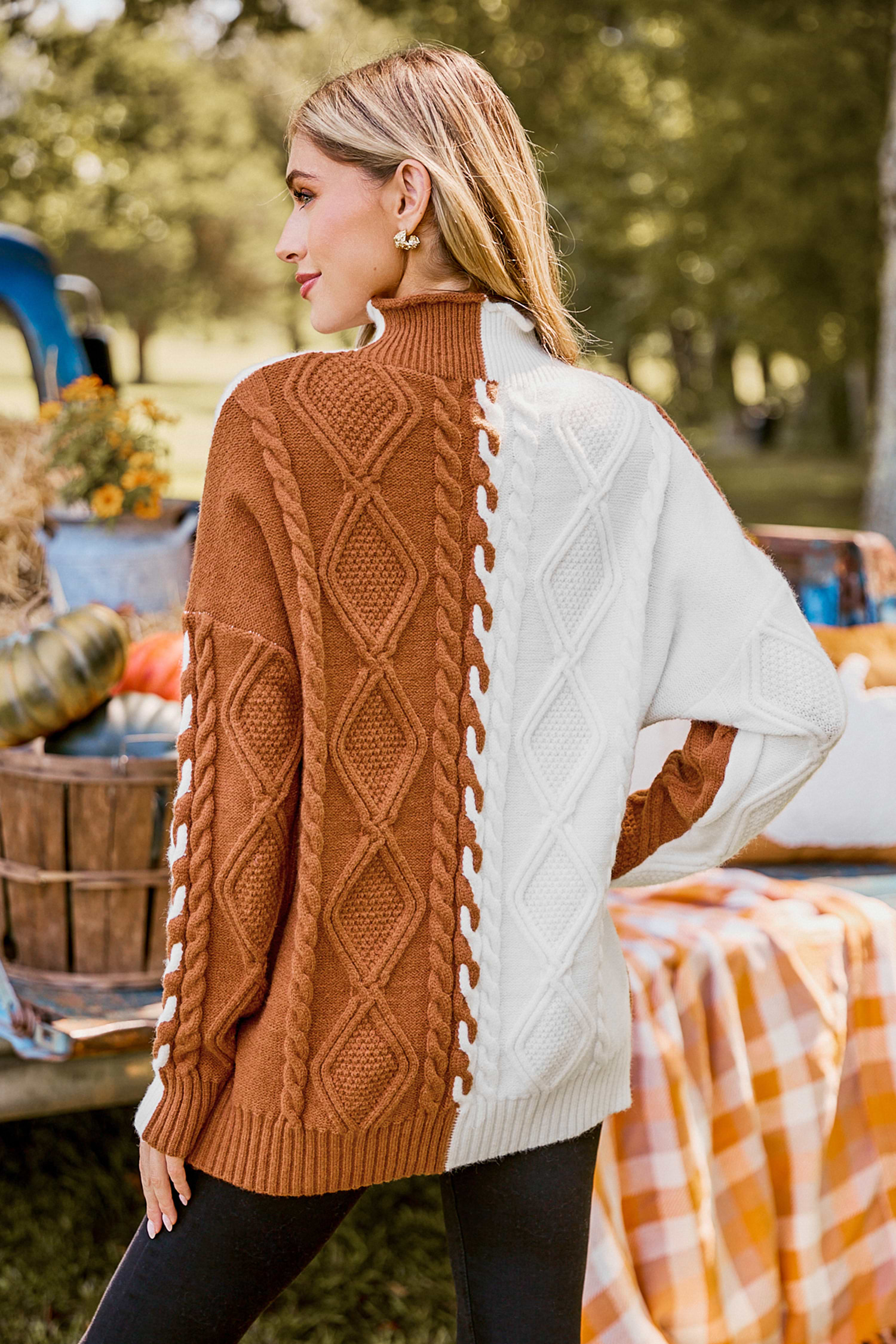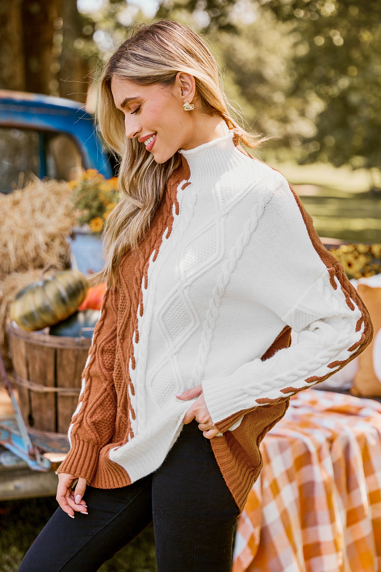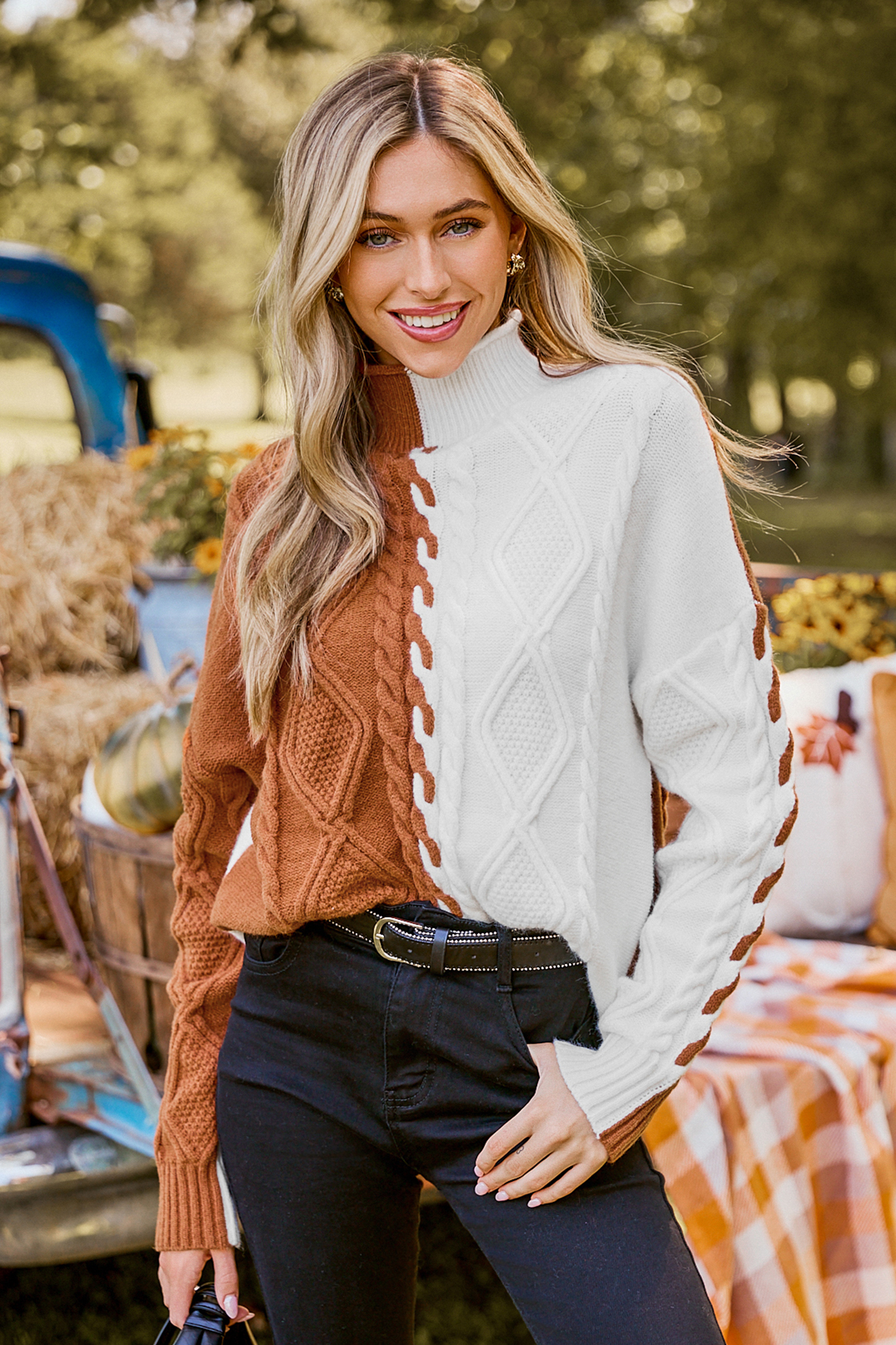 Camel & White Colorblock Turtleneck Long Sleeve Sweater