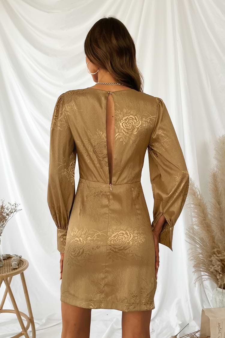 Camelia Rose Floral Print Plunging Bow Mini Dress
