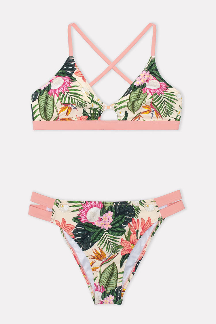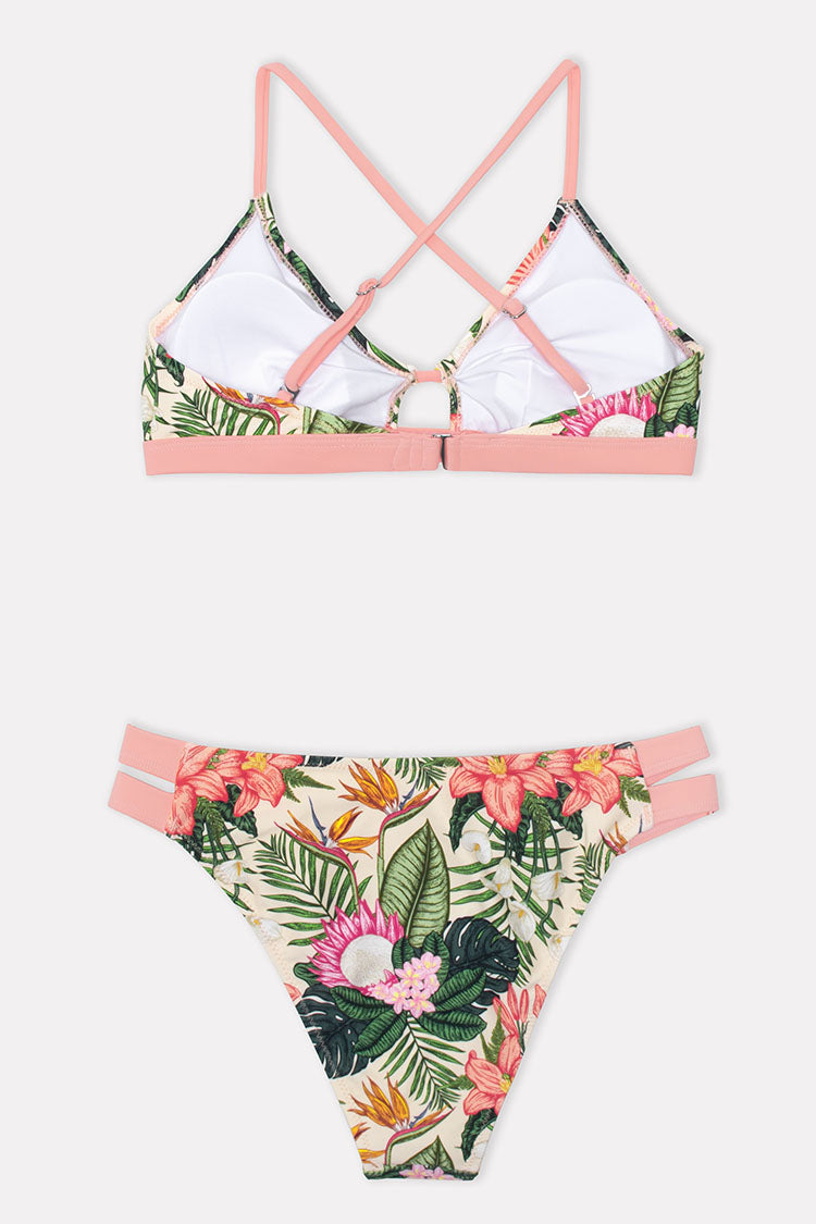 Carolyn Leafy and Floral Crisscross Strappy Bikini
