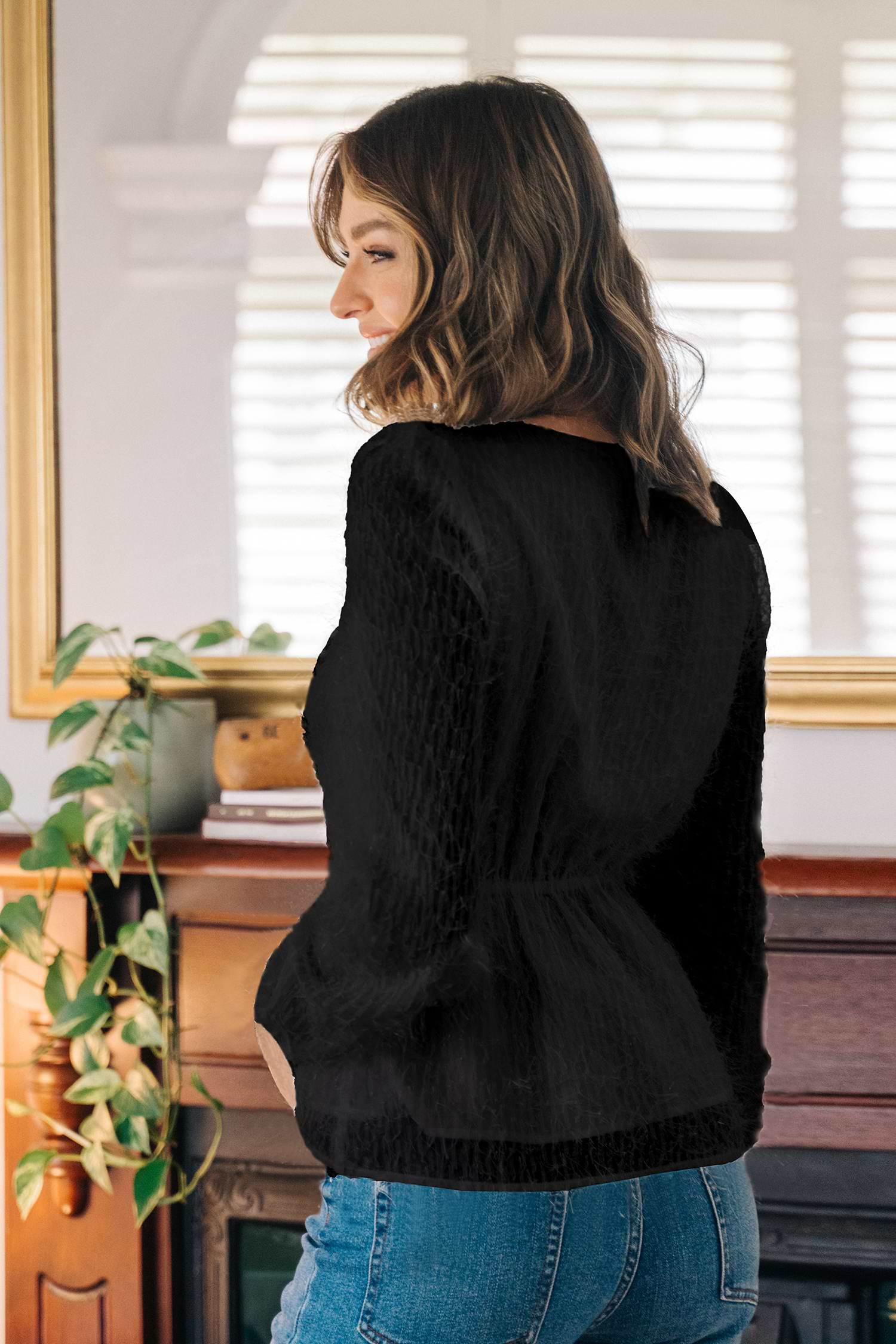 HomeCaye V-neck Fringe Long sleeve Top