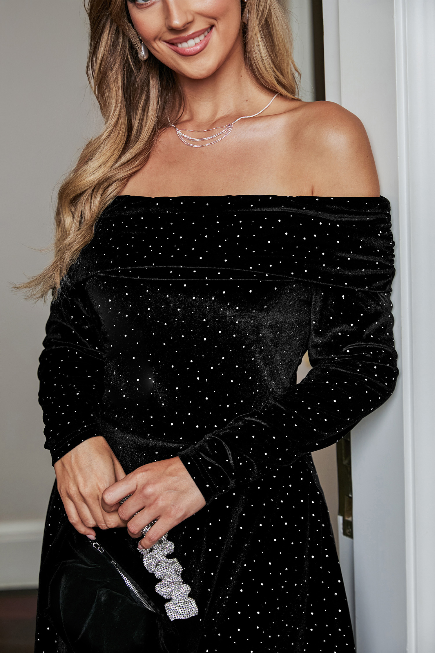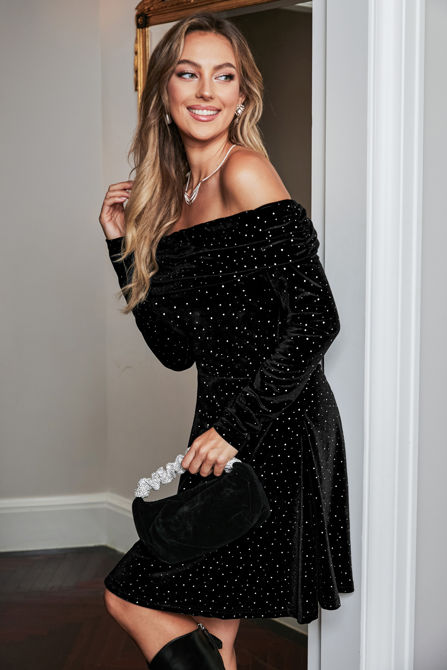 HomeCelestial Night Velvet Off-Shoulder Mini Dress