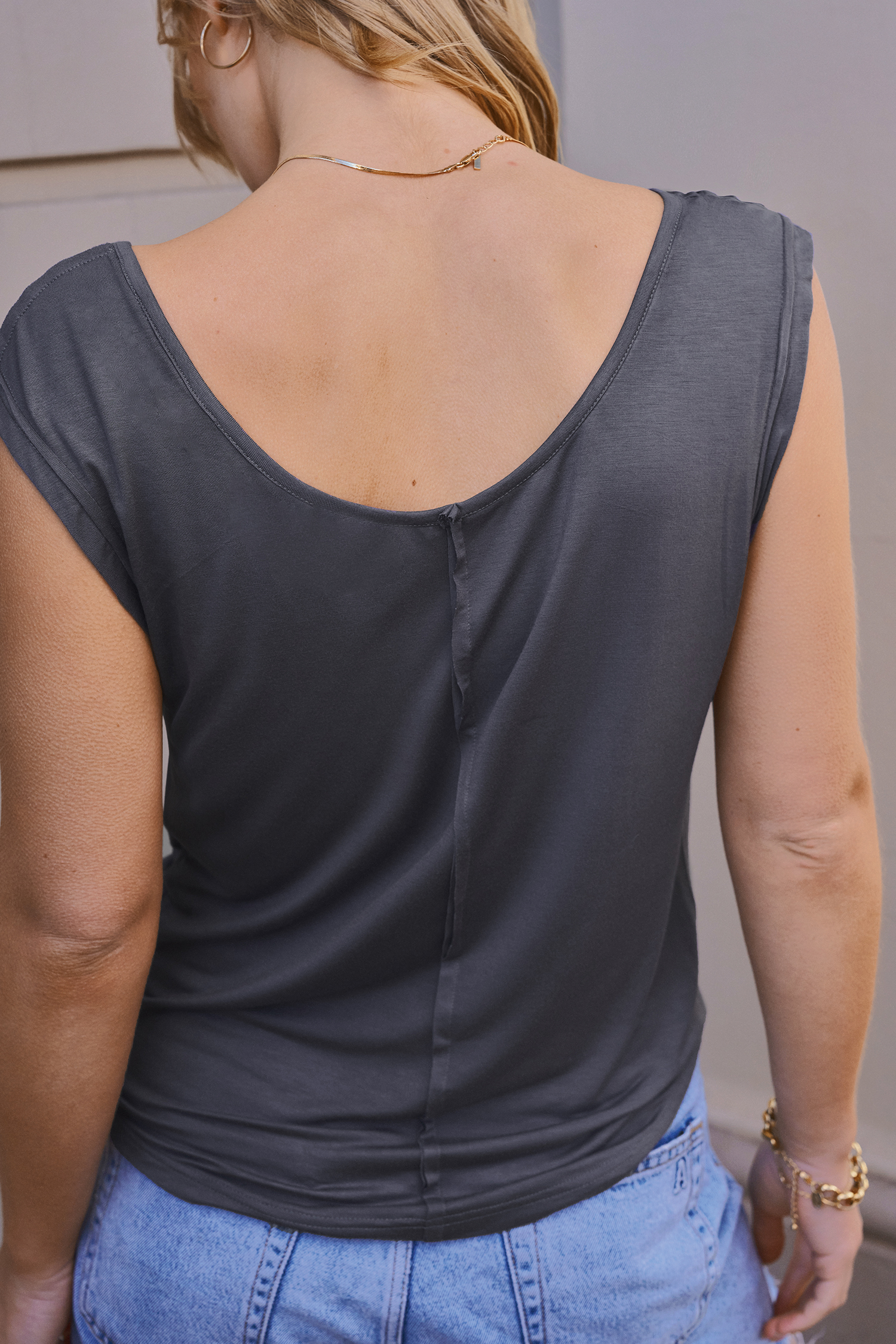 Charcoal Scoop Neck Cap Sleeve Jersey Tee