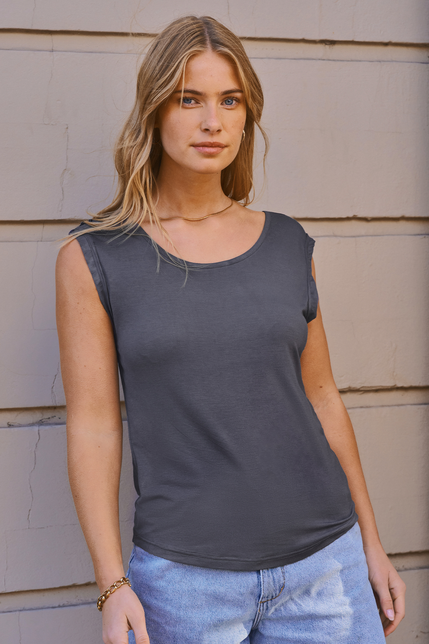 HomeCharcoal Scoop Neck Cap Sleeve Jersey Tee