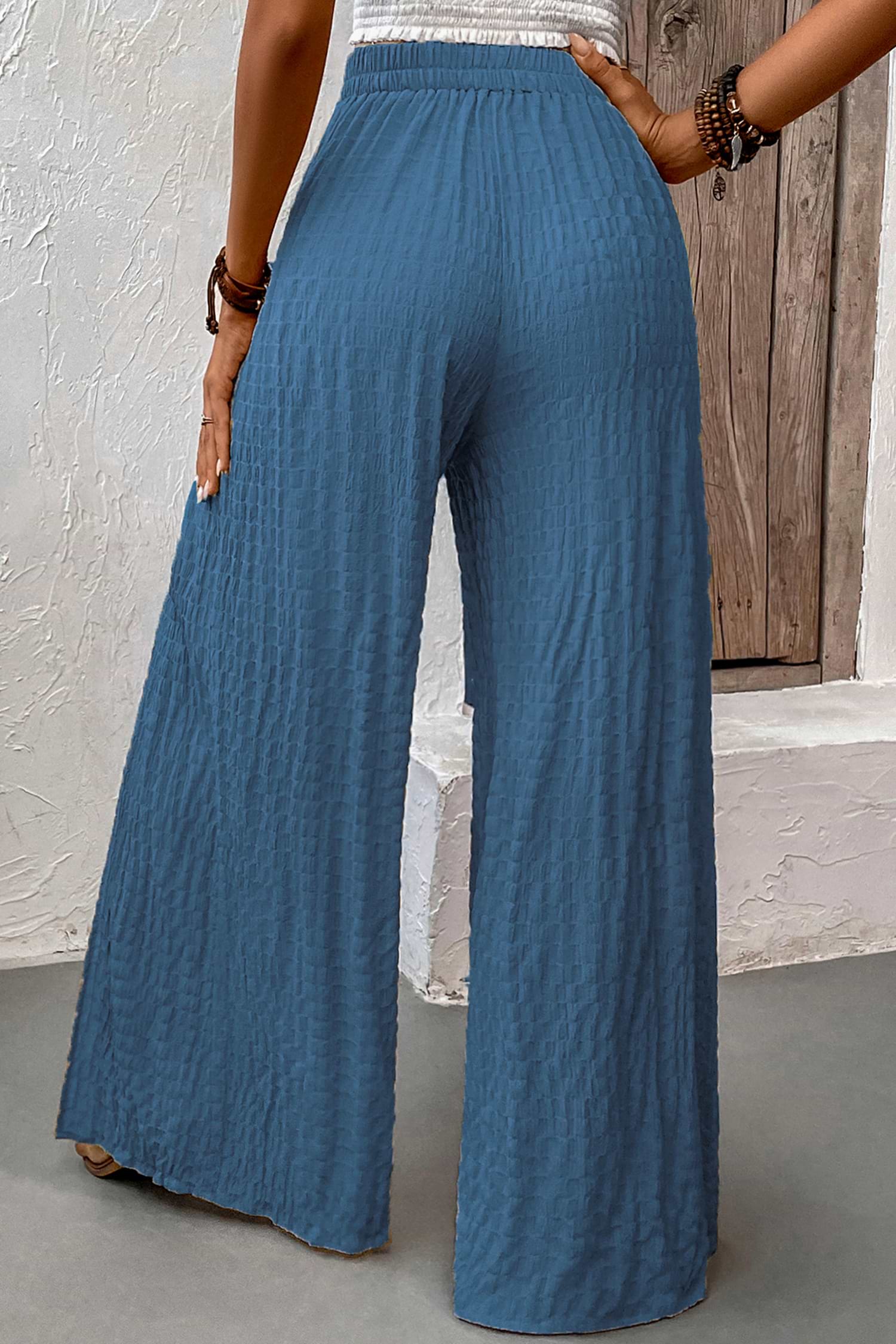 HomeCheckered Blue Wide Leg Split Hem Pants