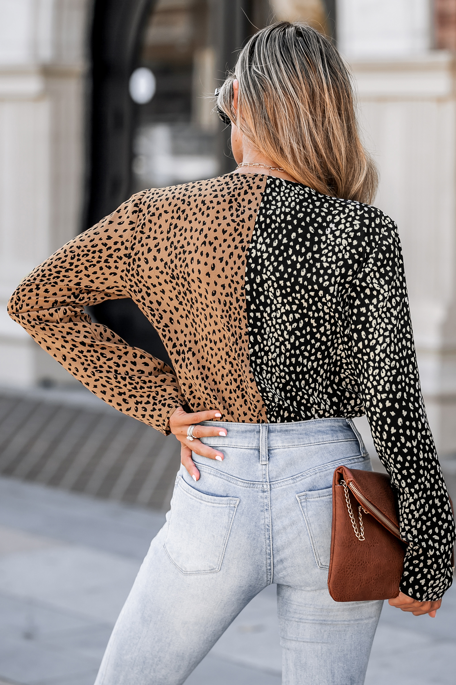 Cheetah Print Colorblock Long Sleeve Bodysuit