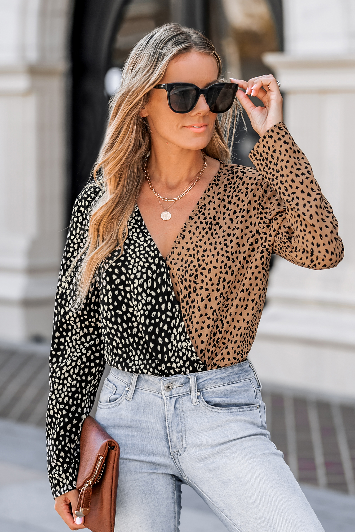 HomeCheetah Print Colorblock Long Sleeve Bodysuit