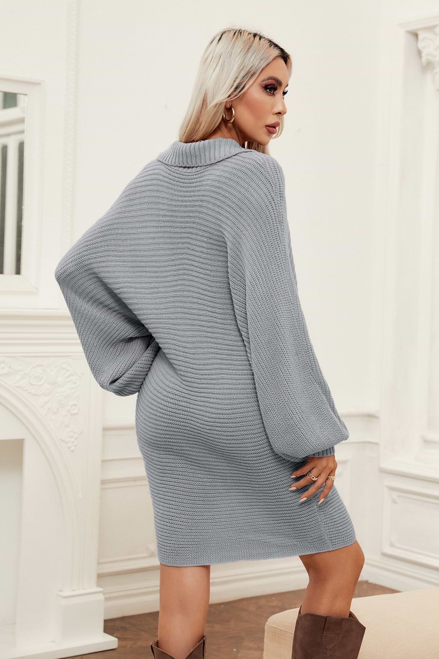 HomeChunky Knit V-Neck Collar Sweater Dress