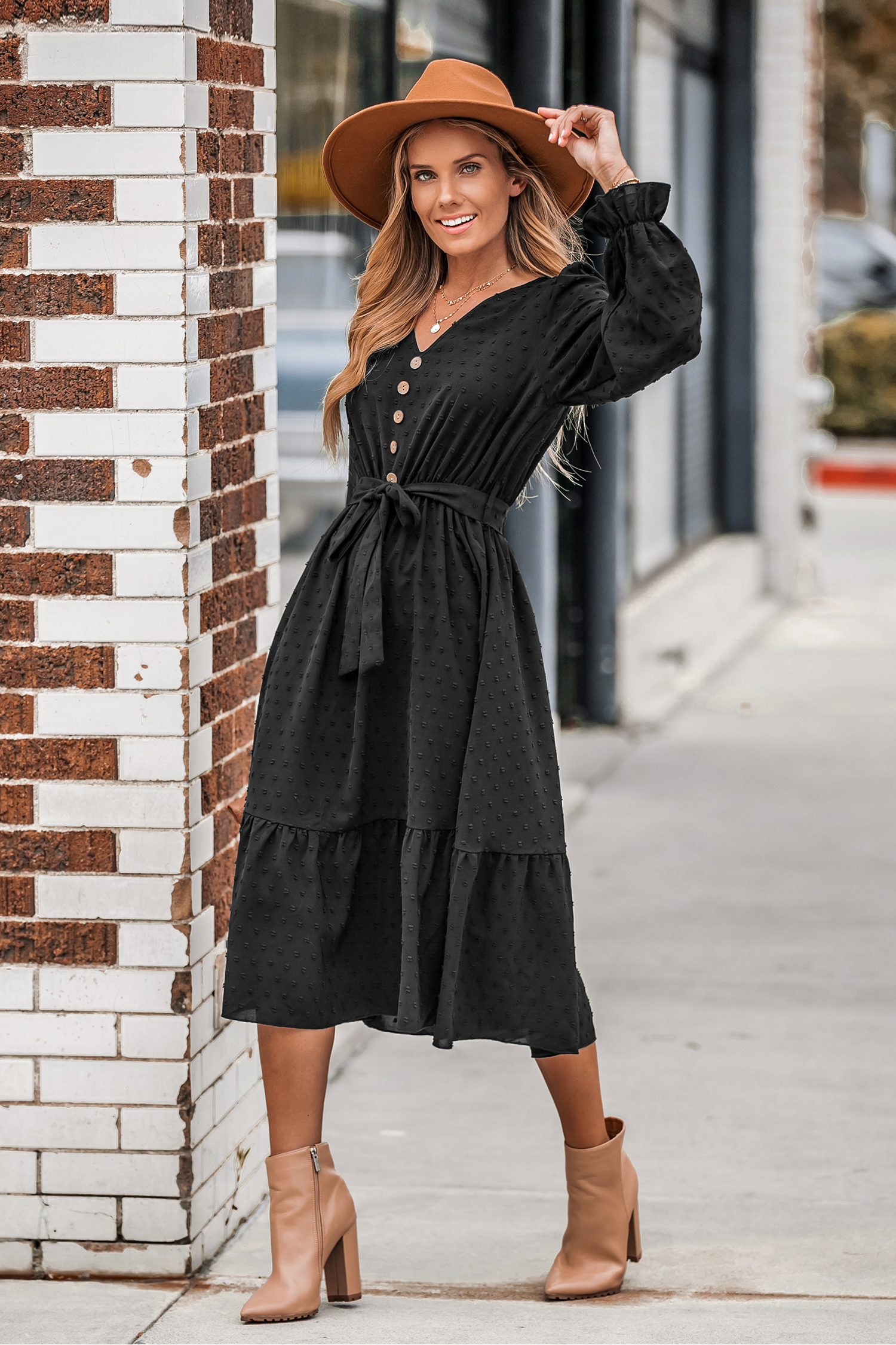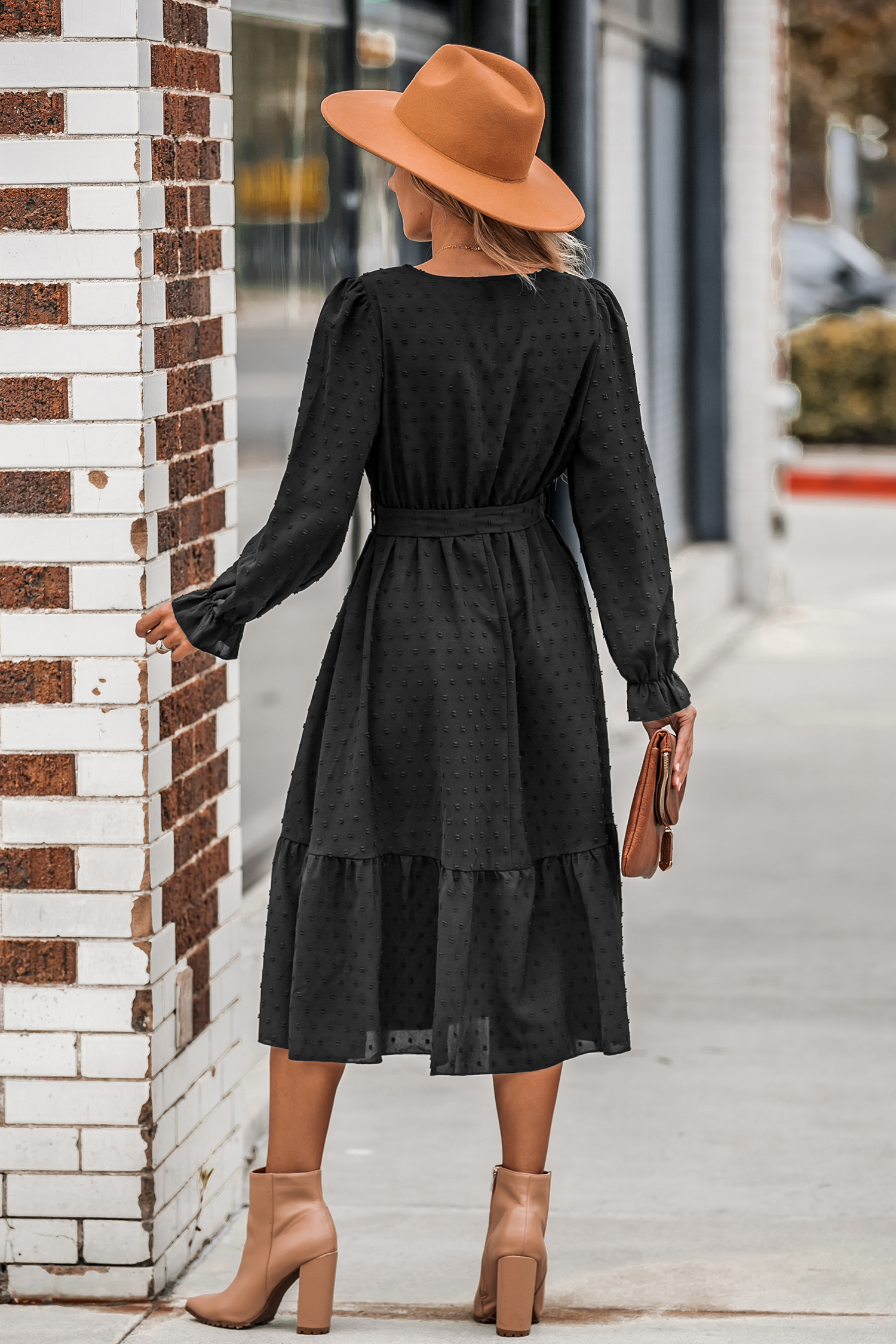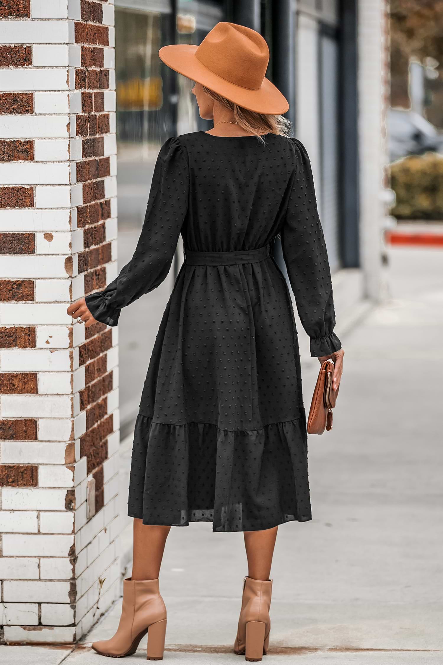 Clip Dot Belted A-Line Midi Dress