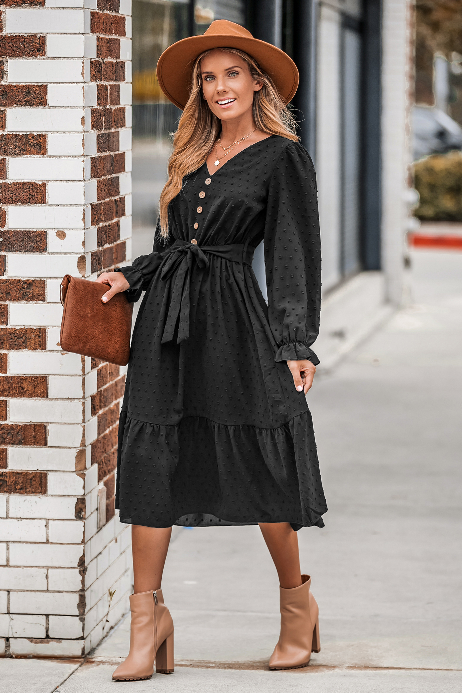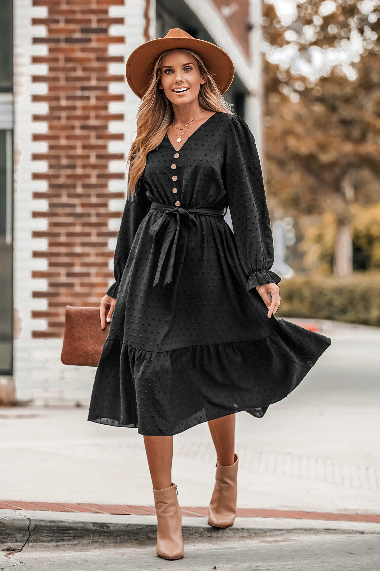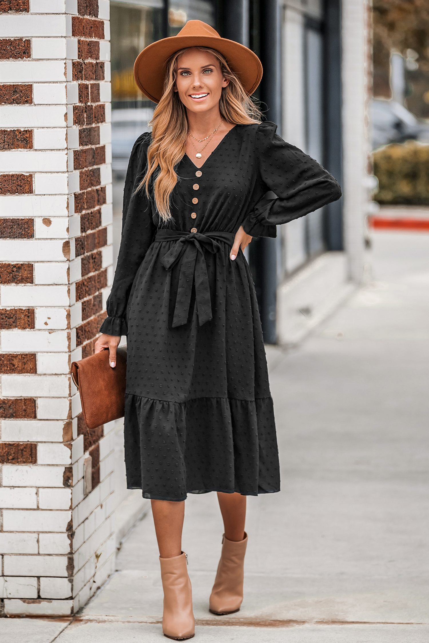 Clip Dot Belted A-Line Midi Dress