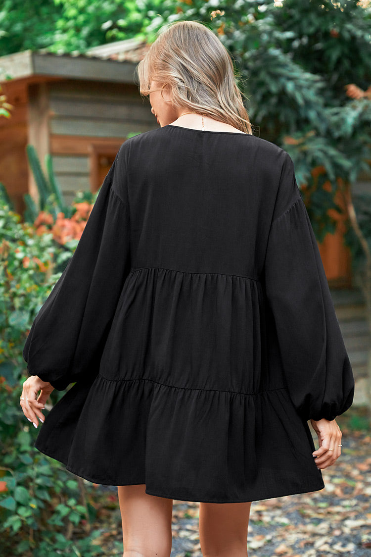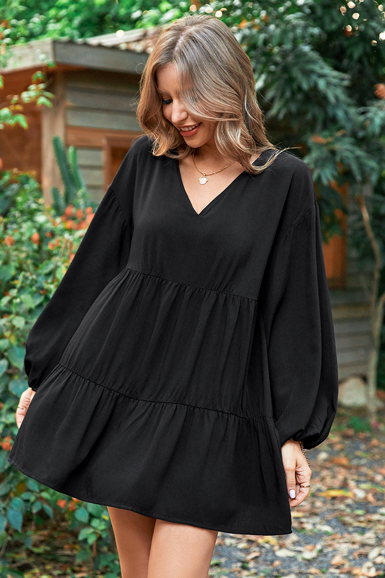 HomeCofete Black V-neck A-Shape Dress