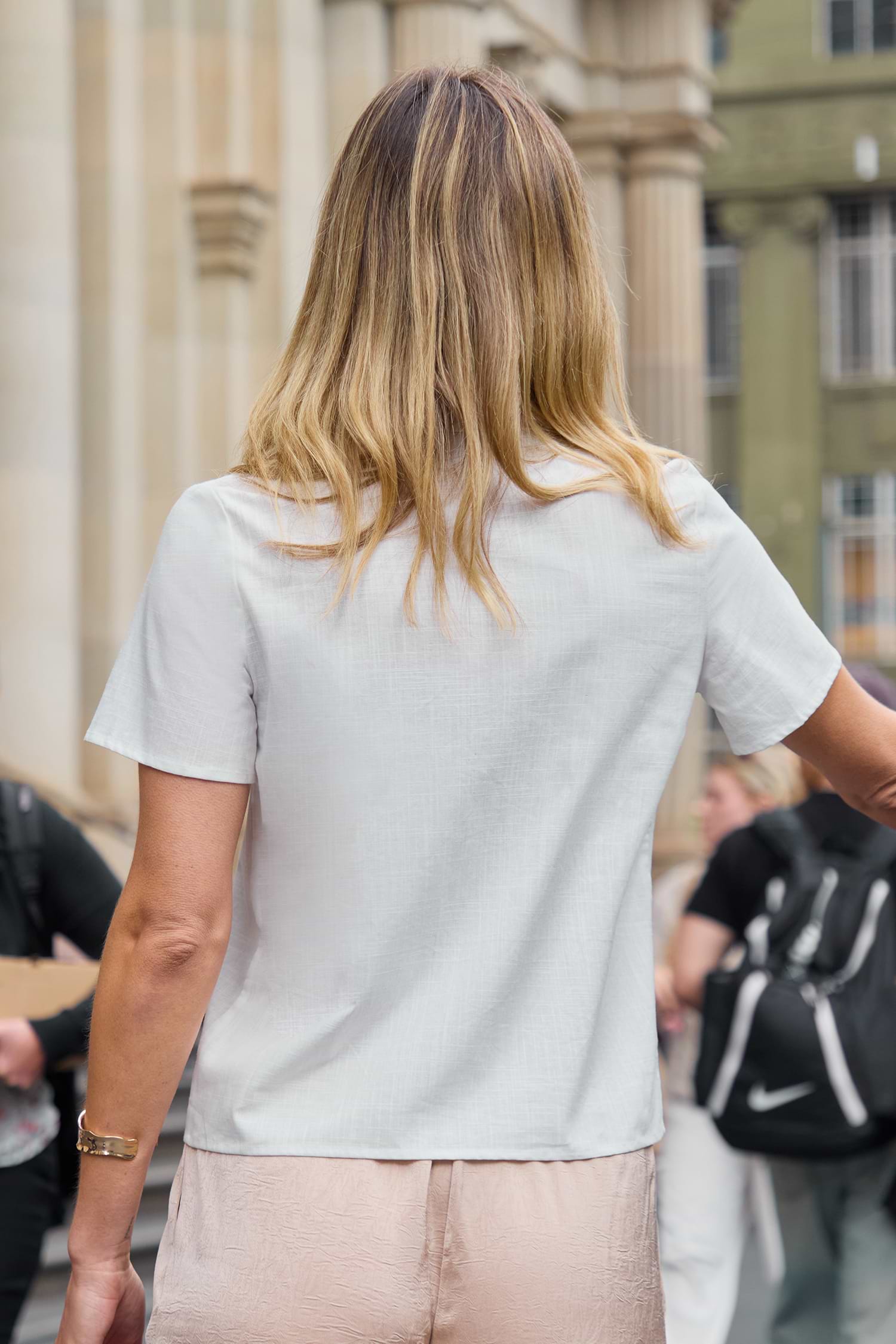 HomeCollared Short Sleeve Front Tie Cotton Blouse