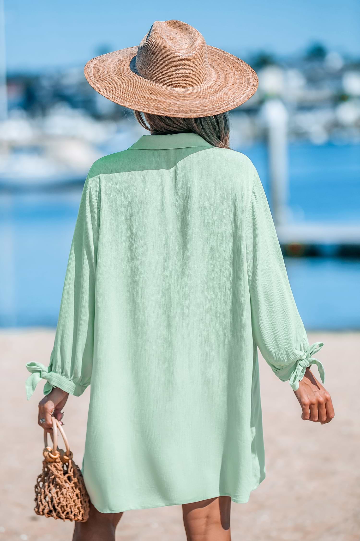 HomeCollared V-Neck Long Sleeve Cover-Up