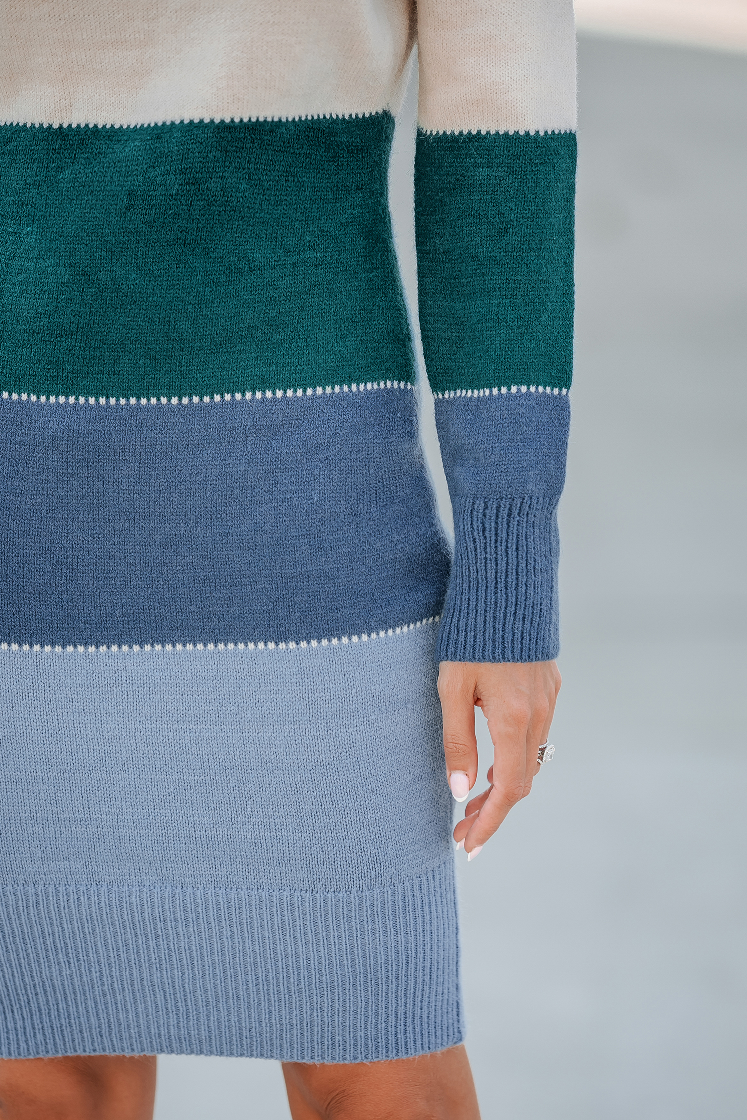 Colorblock Bodycon Cable Knit Sweater Dress