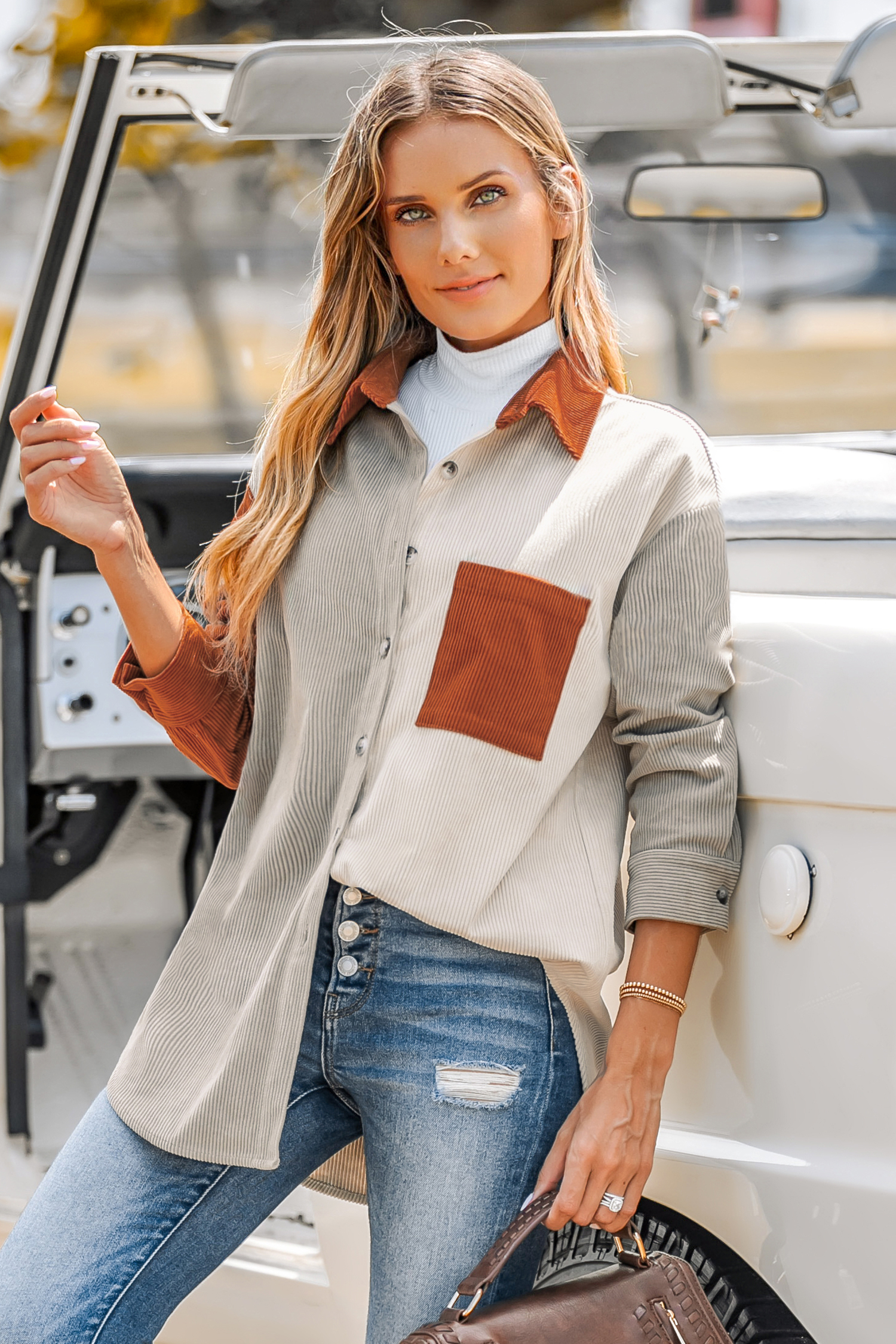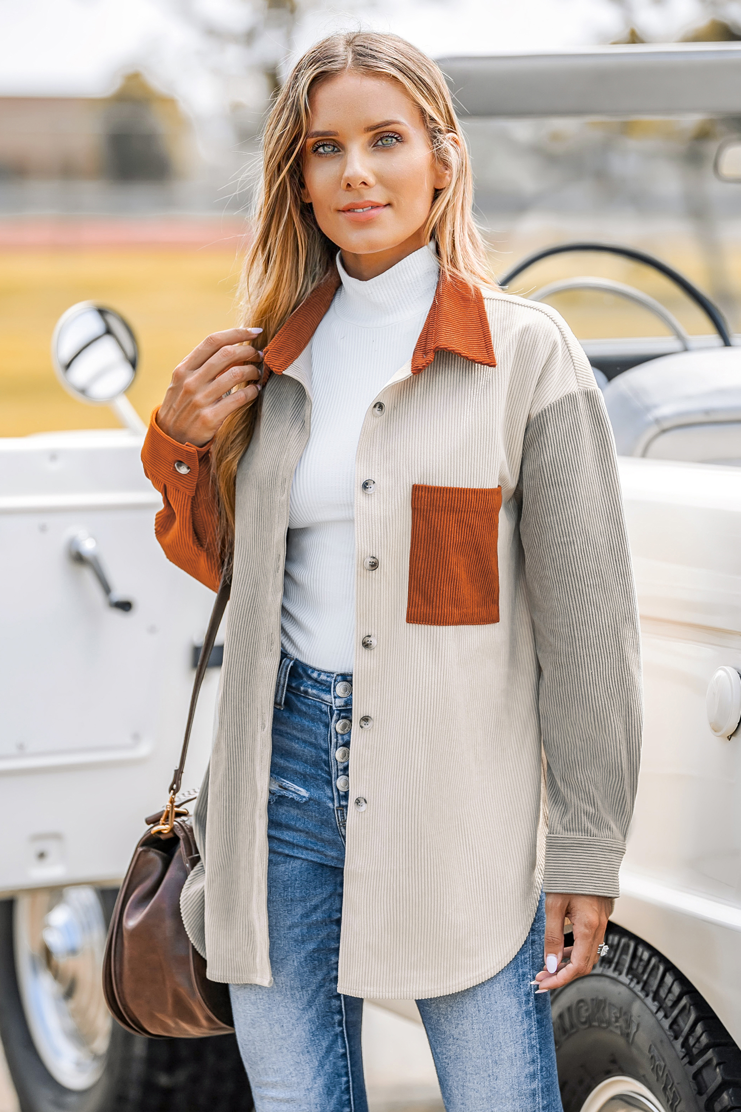 HomeColorblock Button-Front Shacket