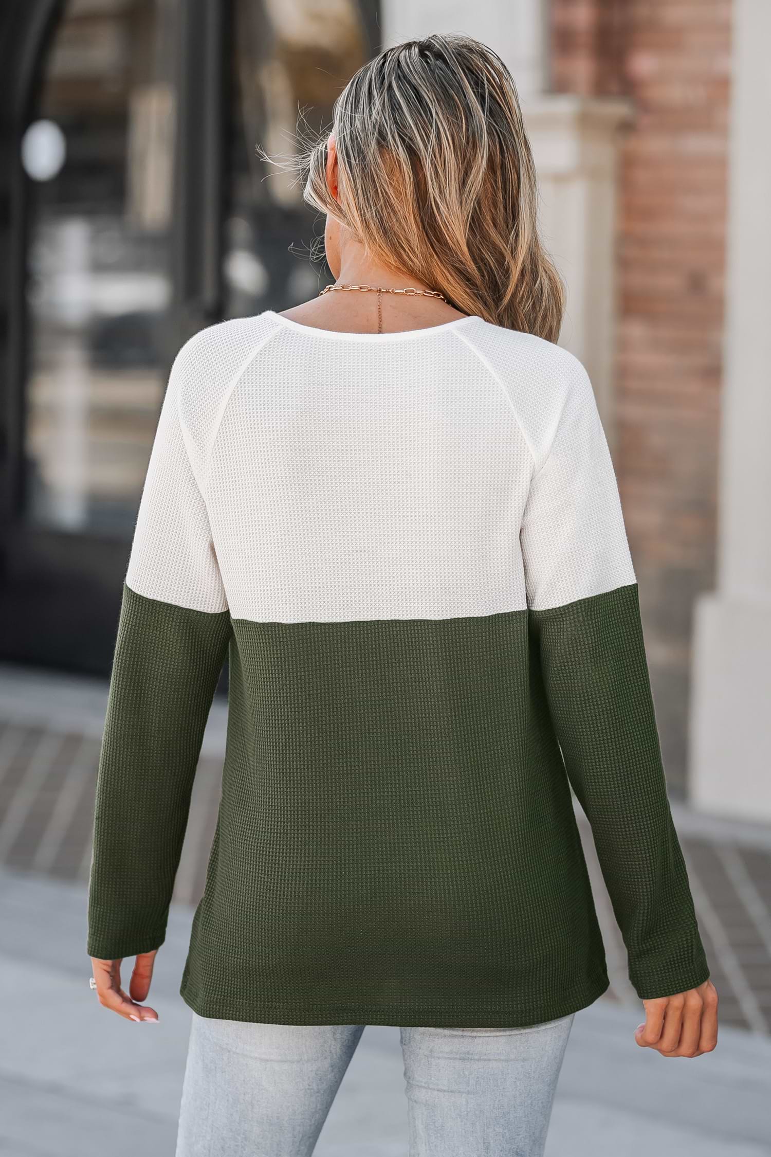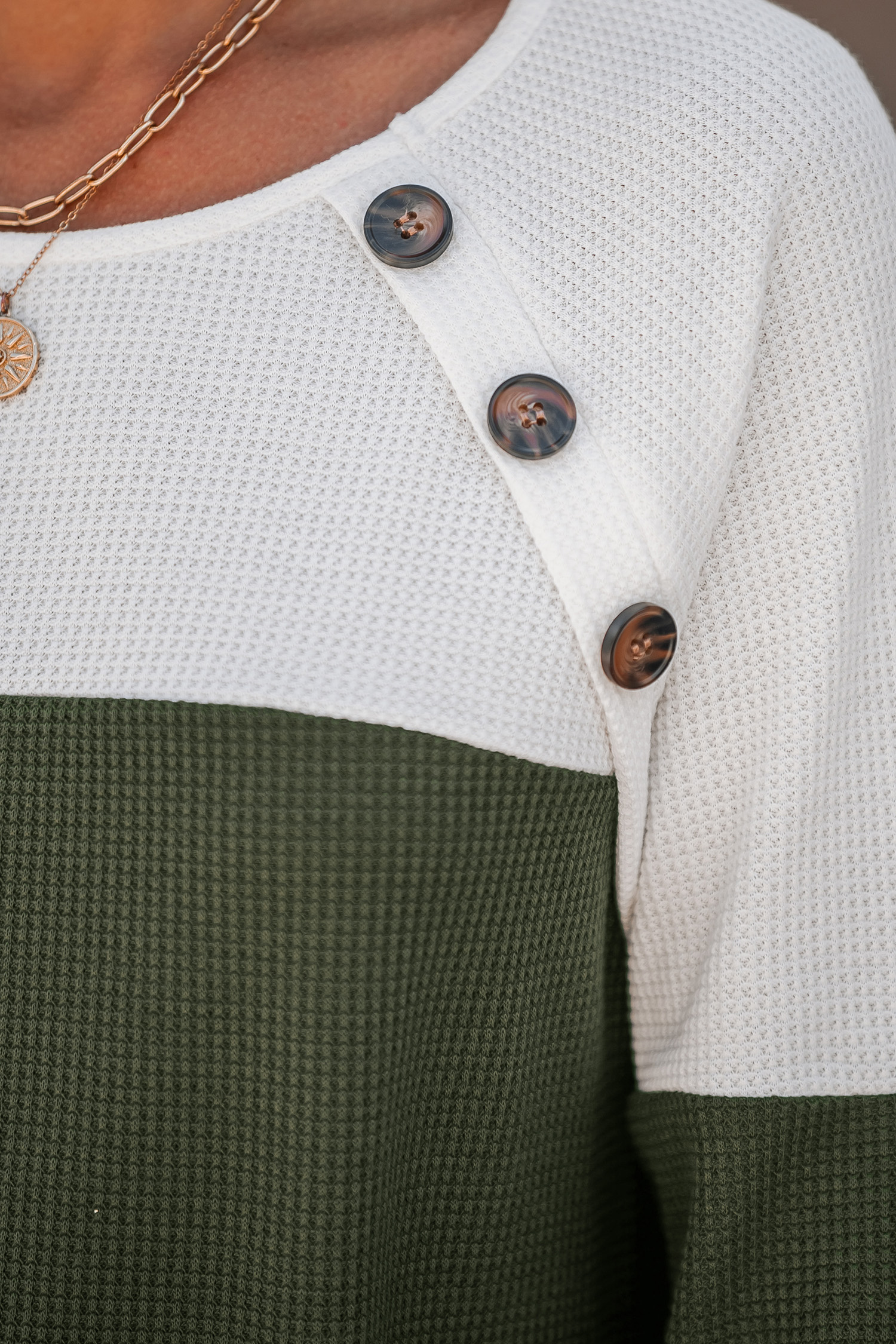 Colorblock Button Raglan Sleeve Tee