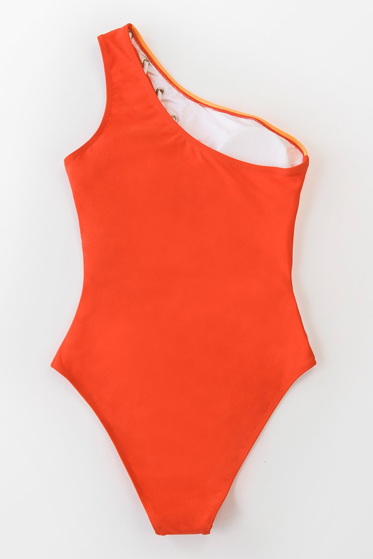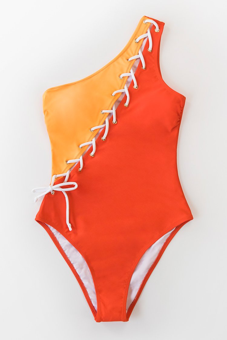 HomeColorblock One Shoulder Lace Up One Piece Swimsuit