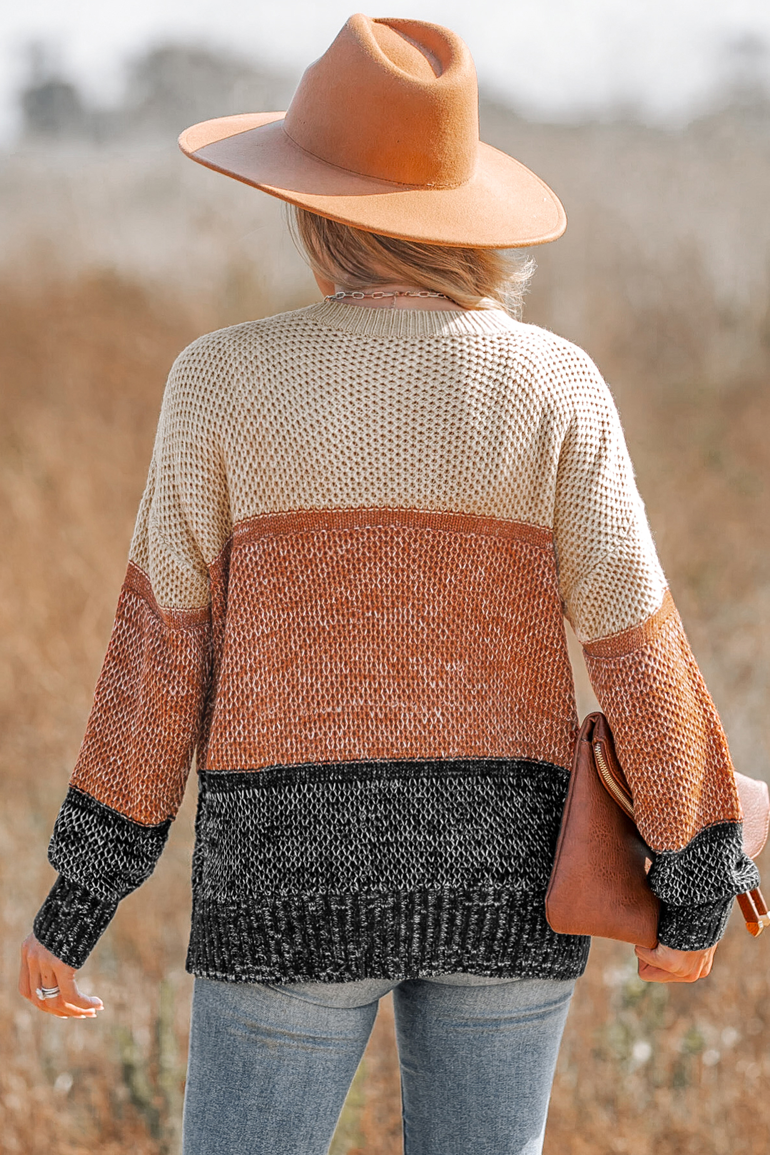 • Colorblock Purl Knit Drop Sleeve Sweater