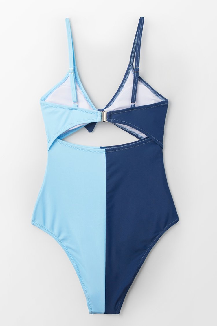 Colorblock Tie Front One-Piece Swimsuit