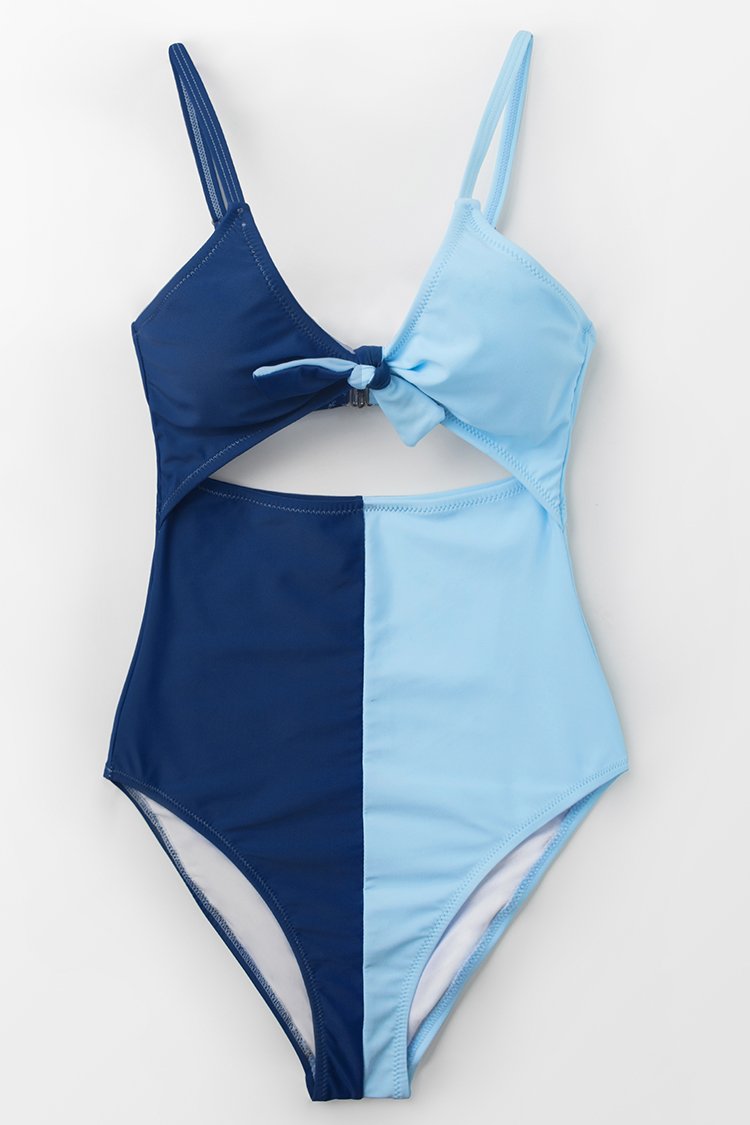 HomeColorblock Tie Front One-Piece Swimsuit