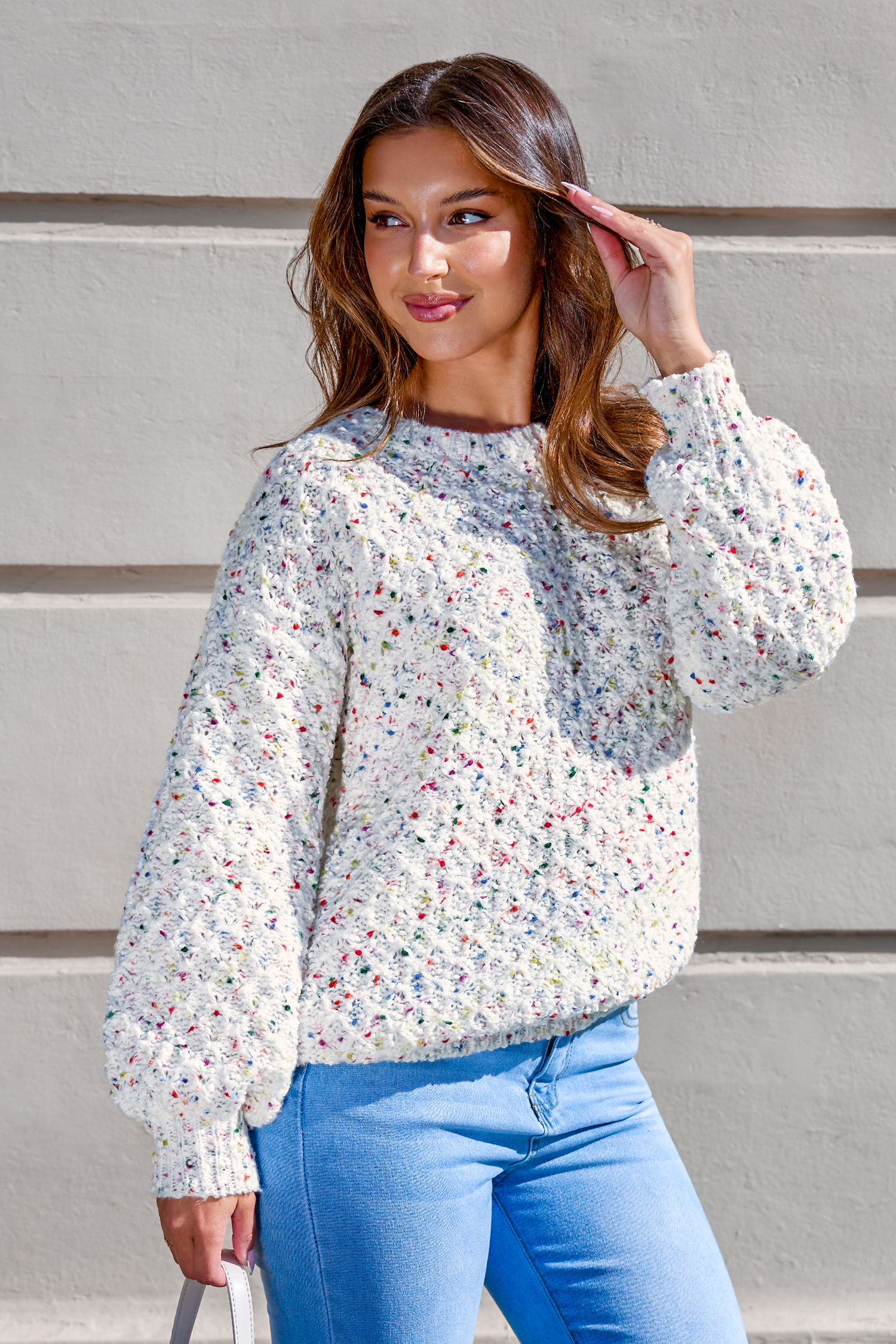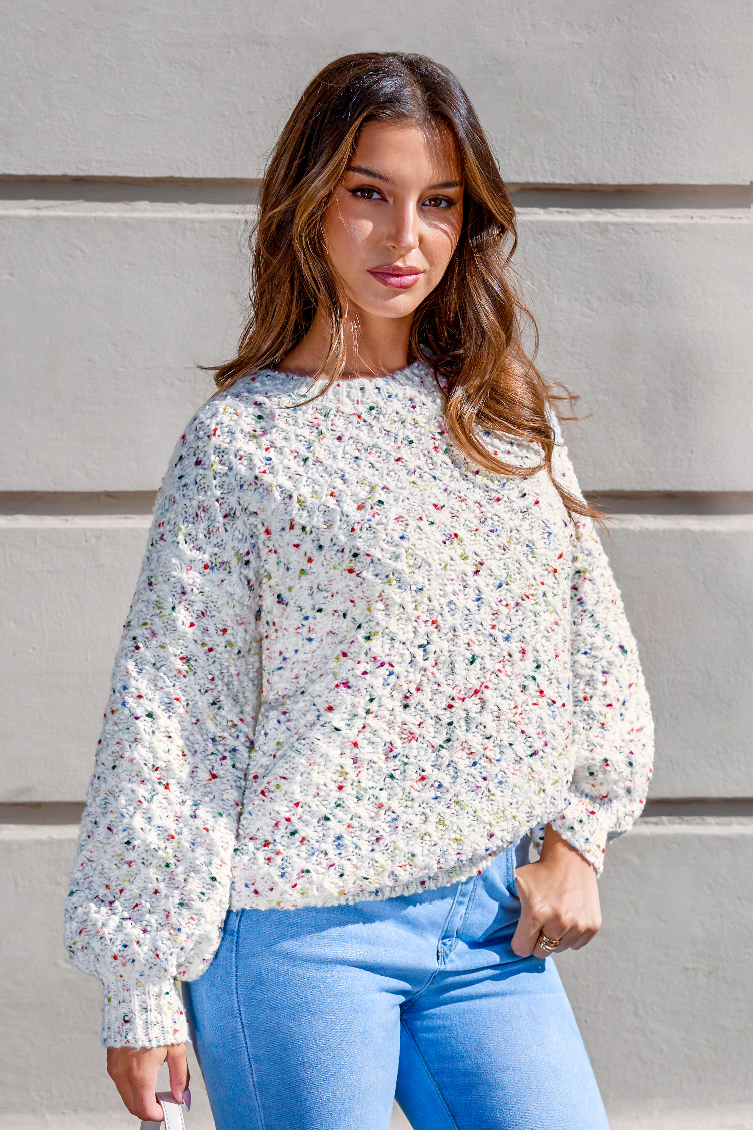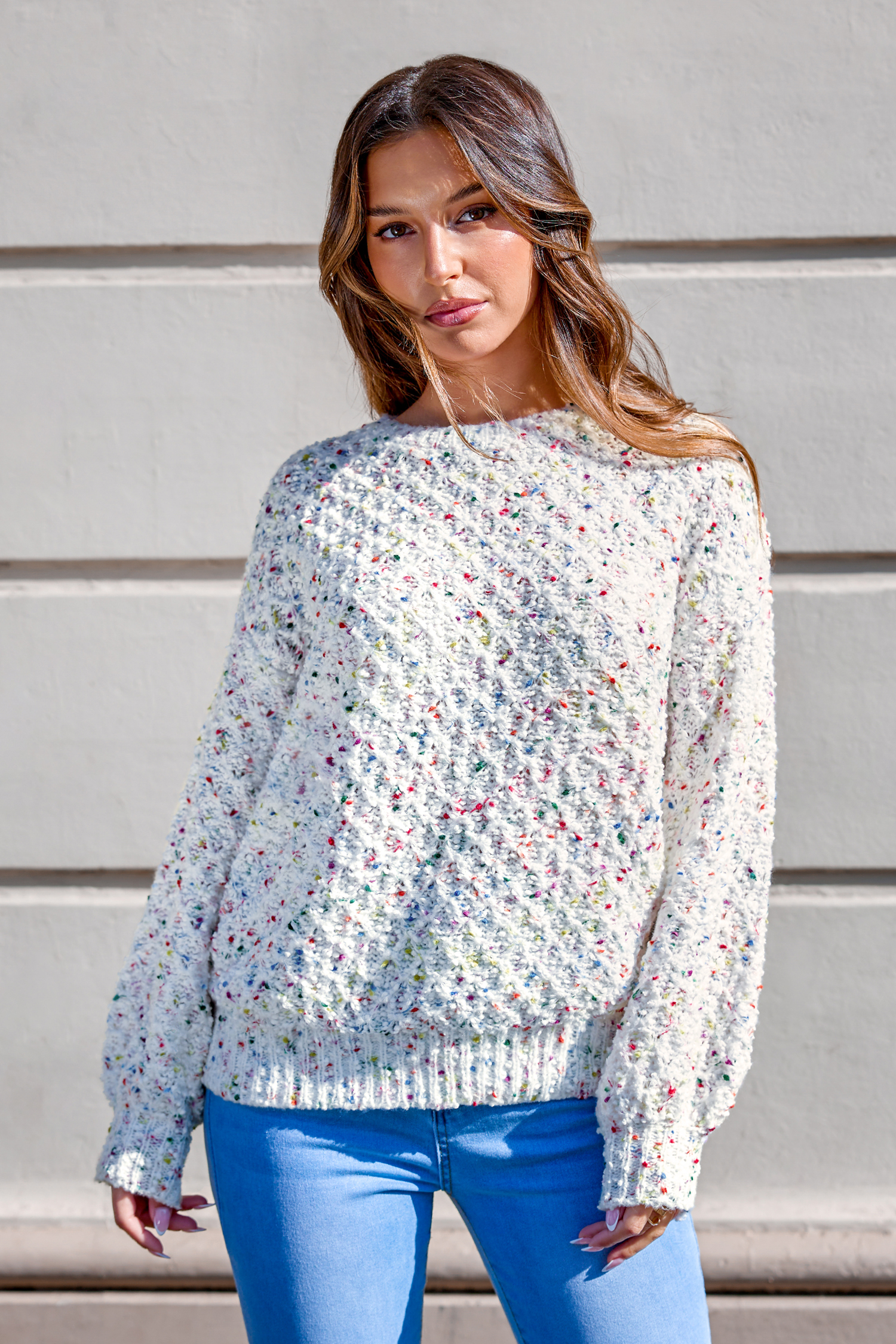 HomeConfetti Knit Round Neck Long Sleeve Sweater