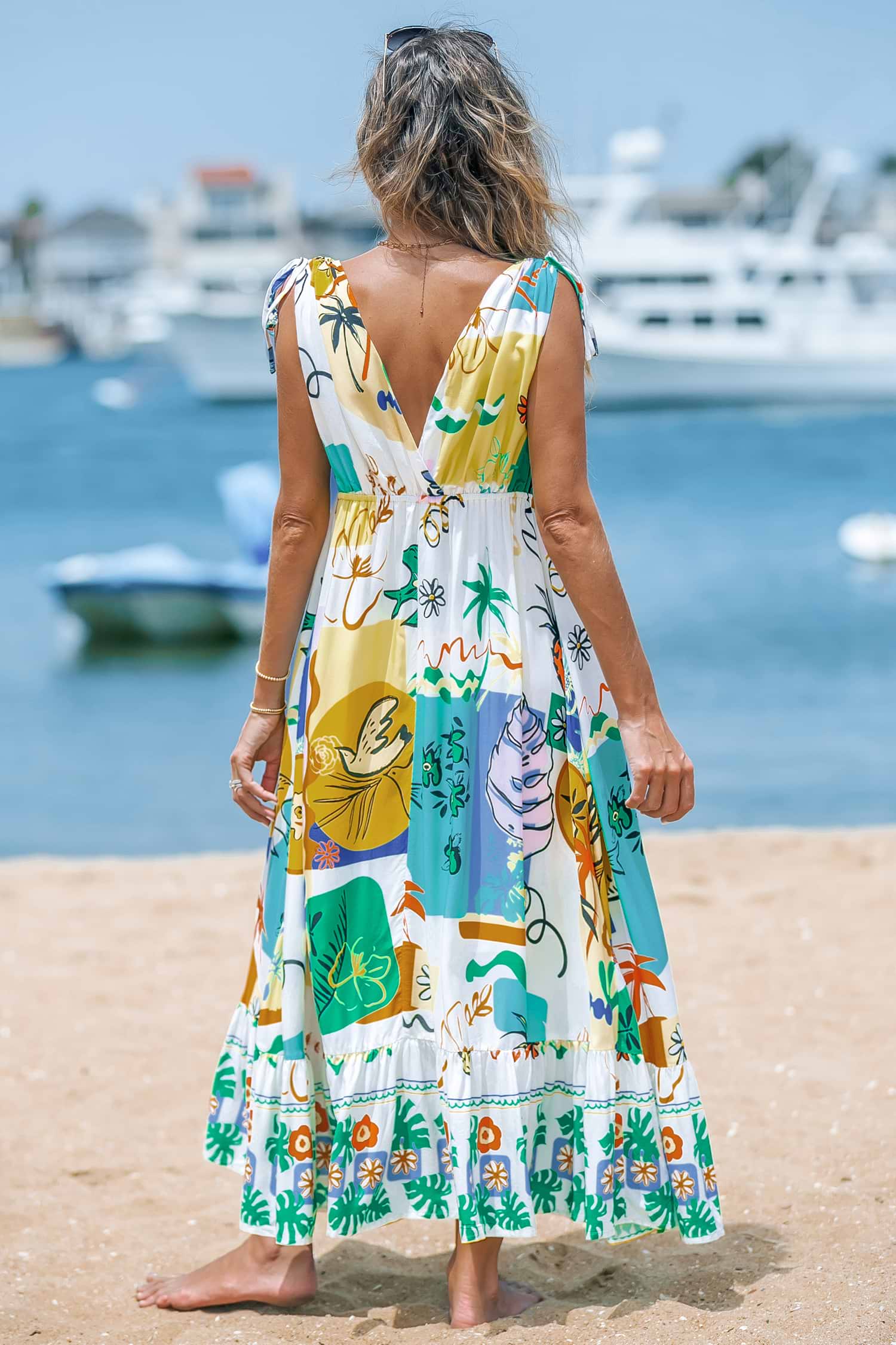 HomeConversational Print Plunging Maxi Dress