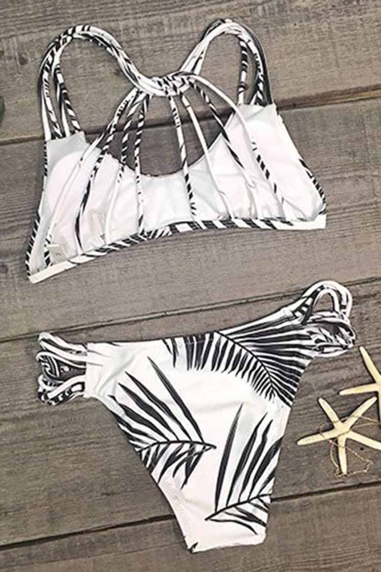 Black Leaves Strappy Bikini Set