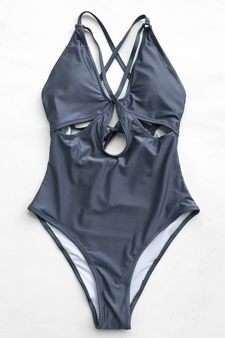 Gray Space Solid One-piece Swimsuit