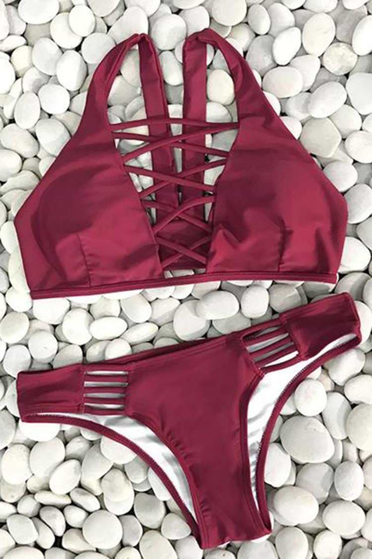 Lingering Farewell Lace Up Bikini Set