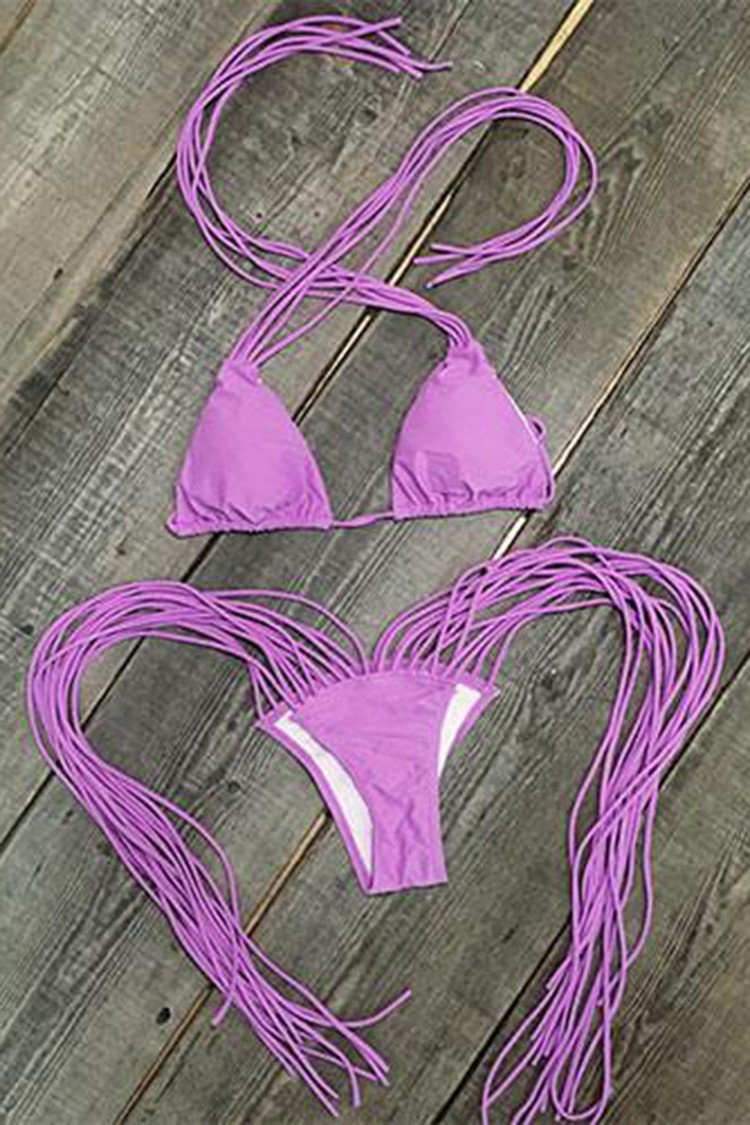 Well Thread Your Fringe Halter Bikini Set