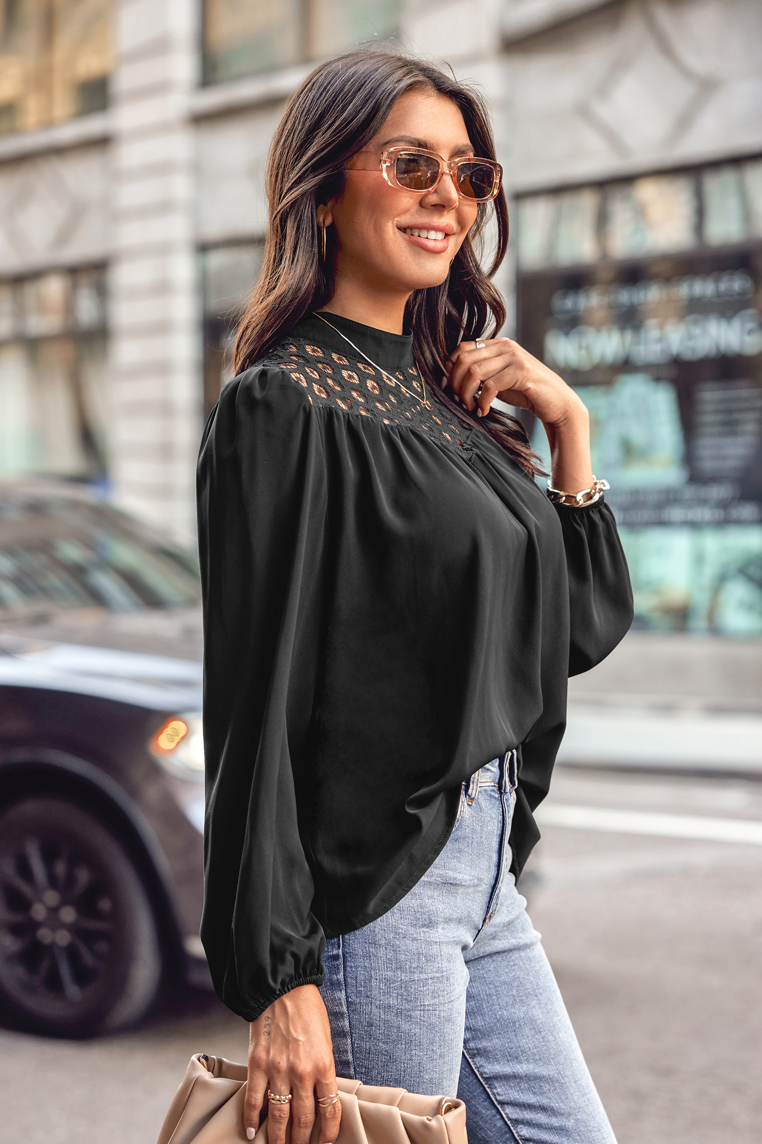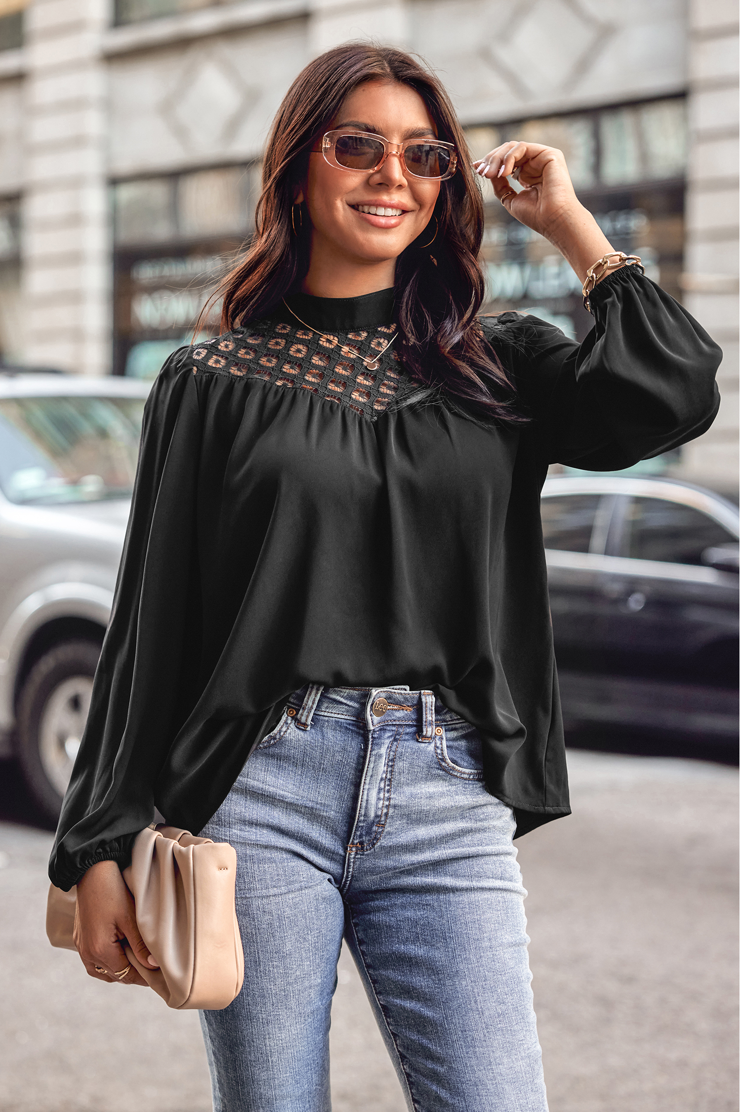 Cutout Lace Peasant Sleeve Top