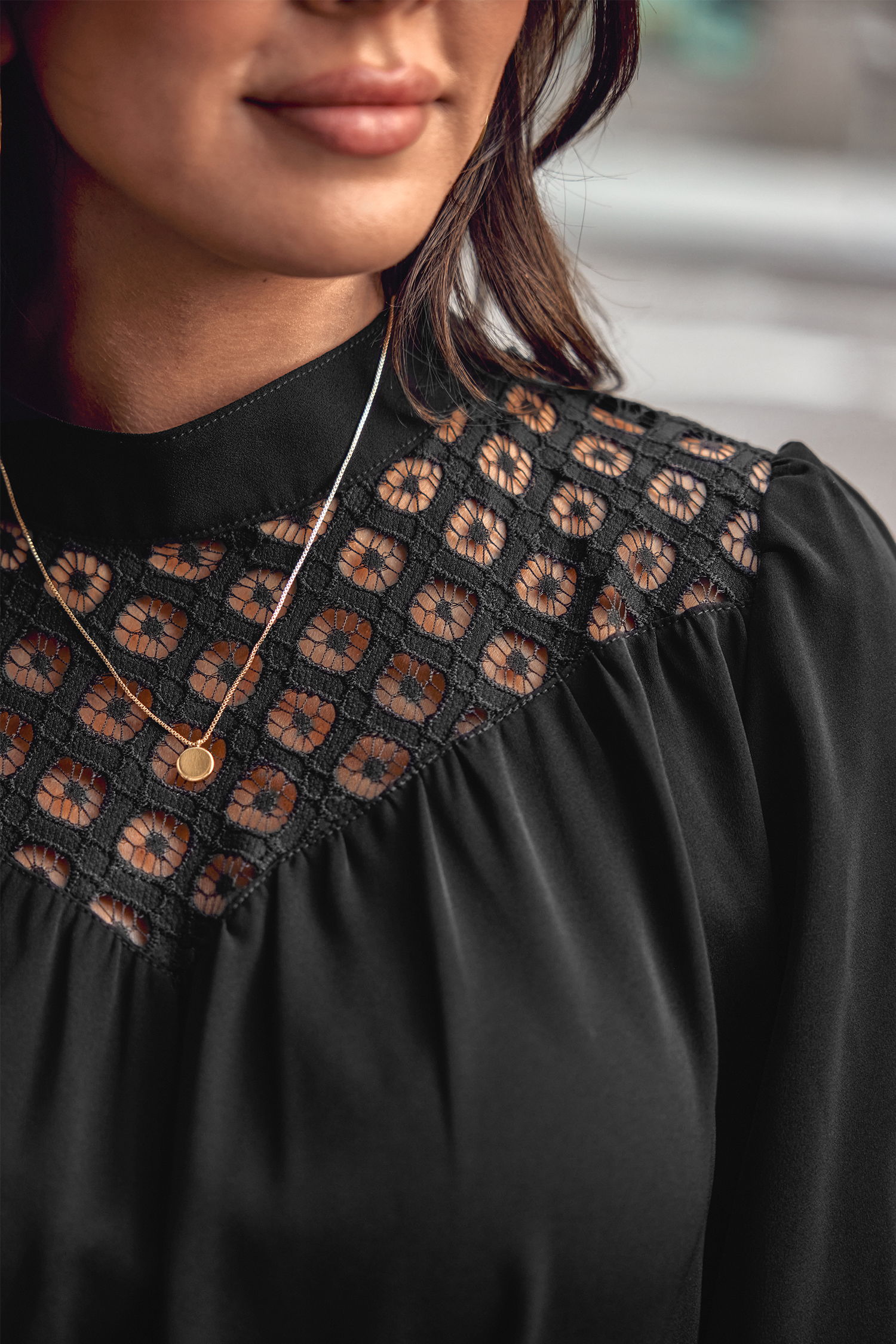 HomeCutout Lace Peasant Sleeve Top