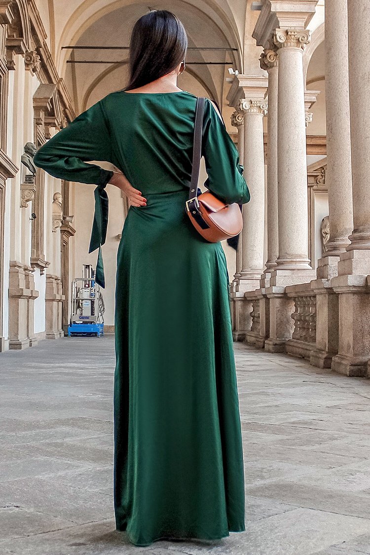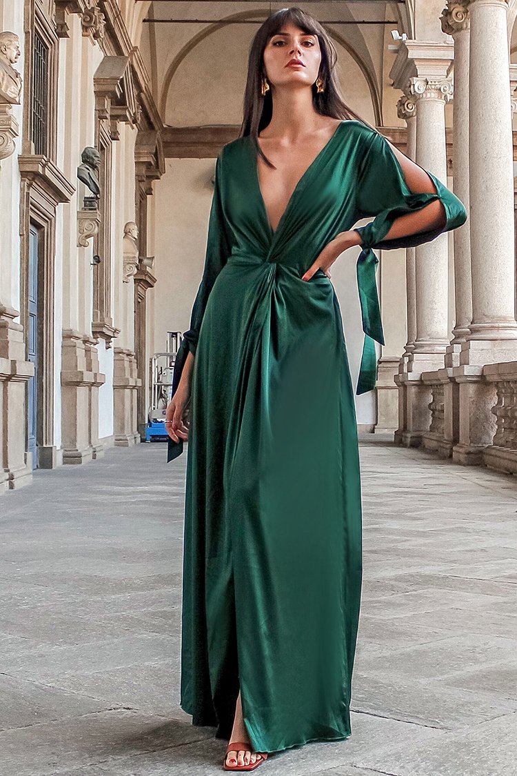 Dark Green Deep V-neck Dress